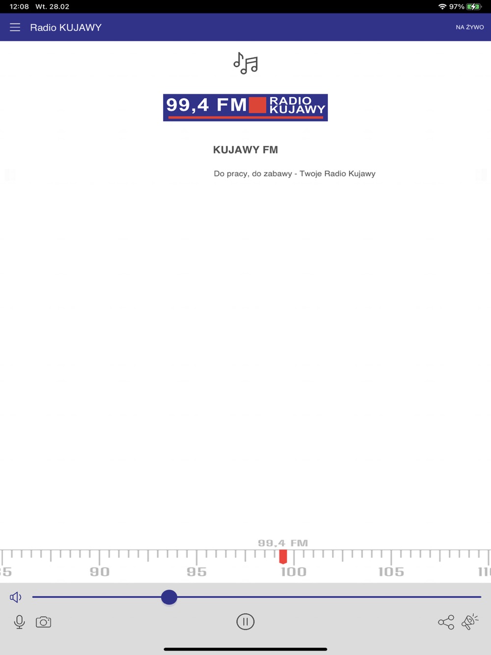 The RadioKUJAWY application allows you to listen to the radio live and send a photo and voice recording to the radio station.