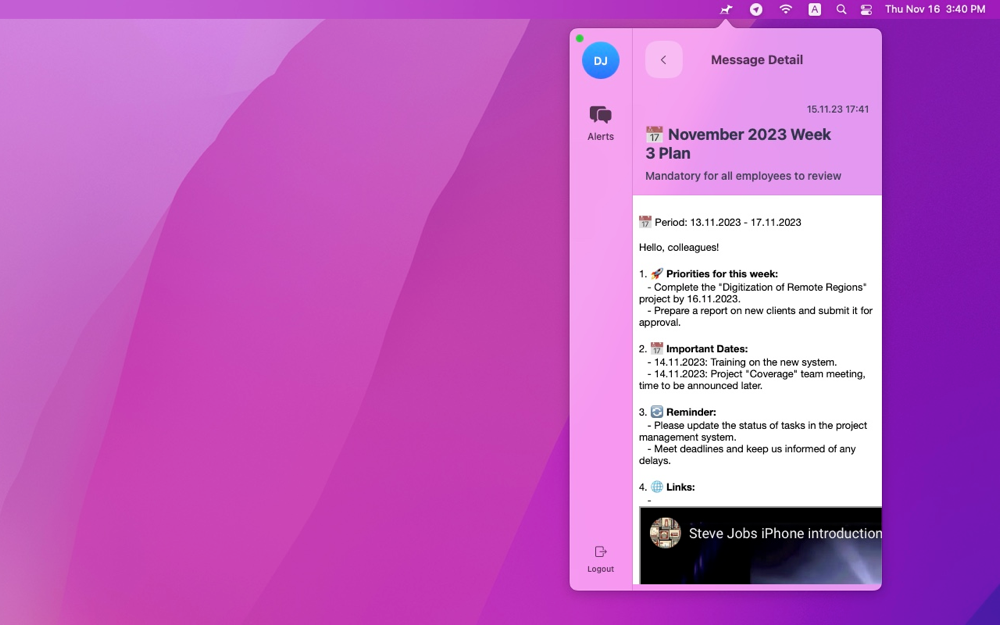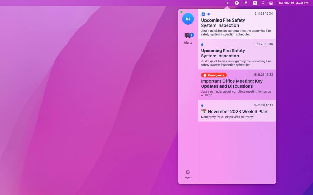 Discover the future of internal communication! Experience an alert app tailored to your employees' preferences. Deliver targeted notifications, fostering engagement and connectivity. In times of urgency, priority modes swiftly convey emergency alerts, keeping everyone informed. Message delivery is guaranteed, even during email or internet outages. Employees with a internet connection will stay informed through our reliable alert system.
