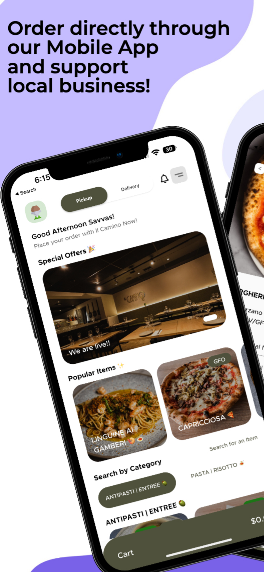 Download the IL Camino App today to gain access to our full menu, order through the app, receive exclusive in-app discounts and gain reward points for each order to use on future purchases!