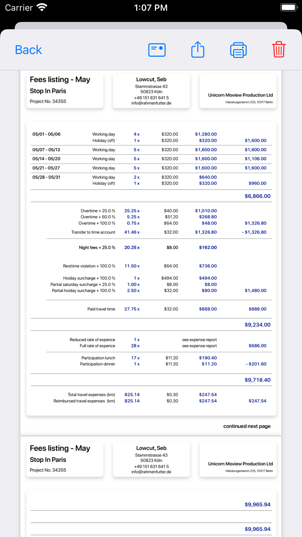 Customizable Settings for International Filmmaking: Dreharbeit offers extensive customization options to adapt to almost any conditions in the international film business. Tailor the app to suit your specific requirements, ensuring accurate and efficient invoicing.