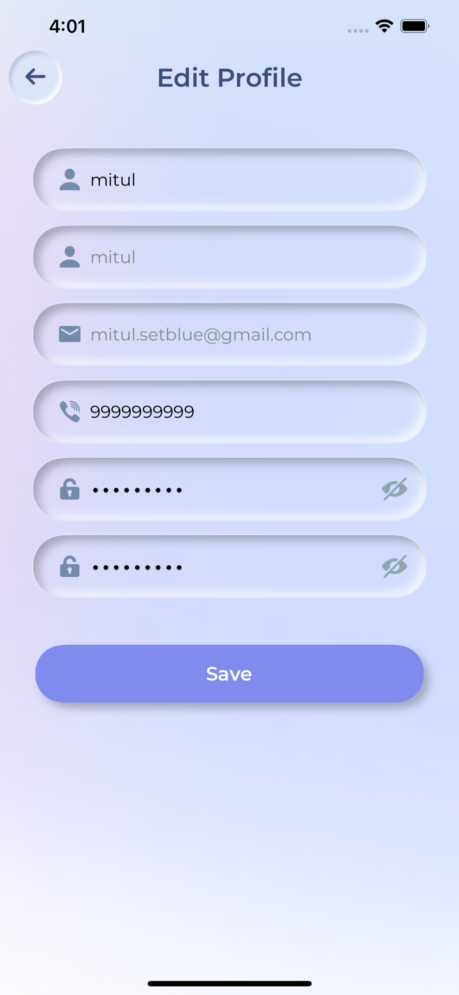 - User information can be edited from settings