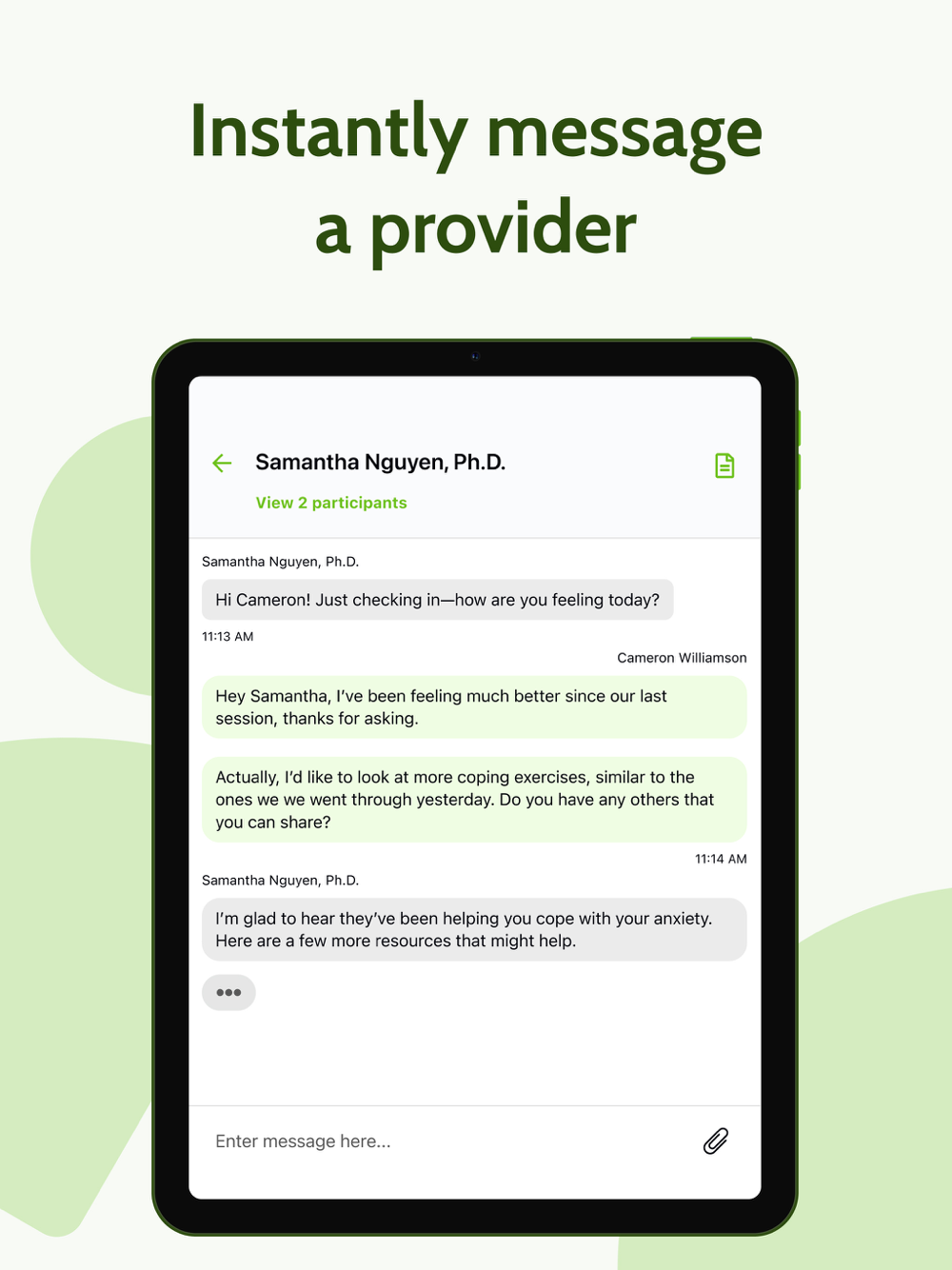 Wondering how CayaTalk works? With CayaTalk, you can effortlessly connect with a licensed therapist in the state of Florida from the comfort of your device. Choose to utilize text, audio, and video messaging to communicate with your therapist, giving you the flexibility and freedom to seek support whenever and however you need it. Simply complete a short questionnaire and tell us about your therapy preferences and we will match you with a qualified therapist in your state.