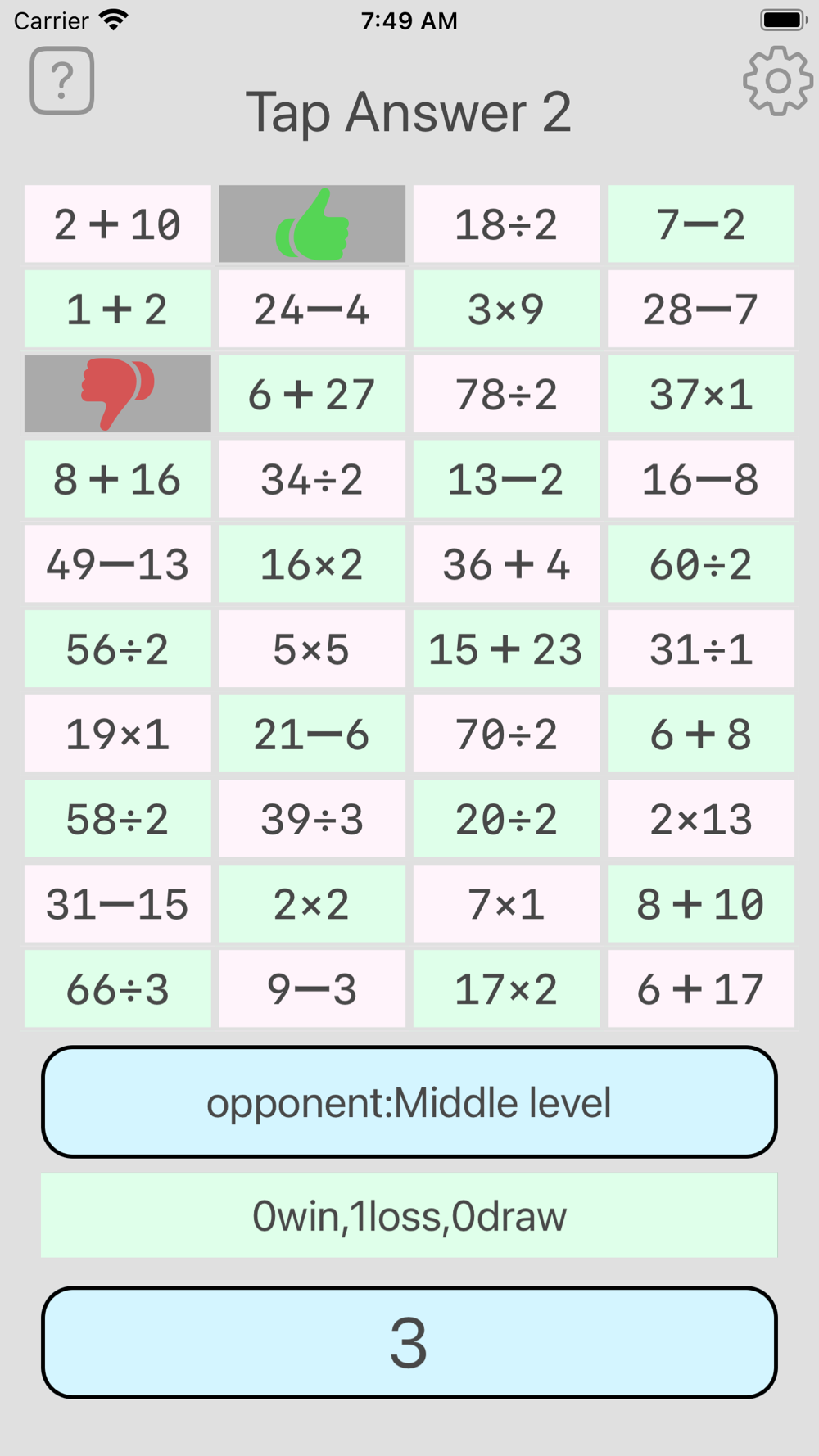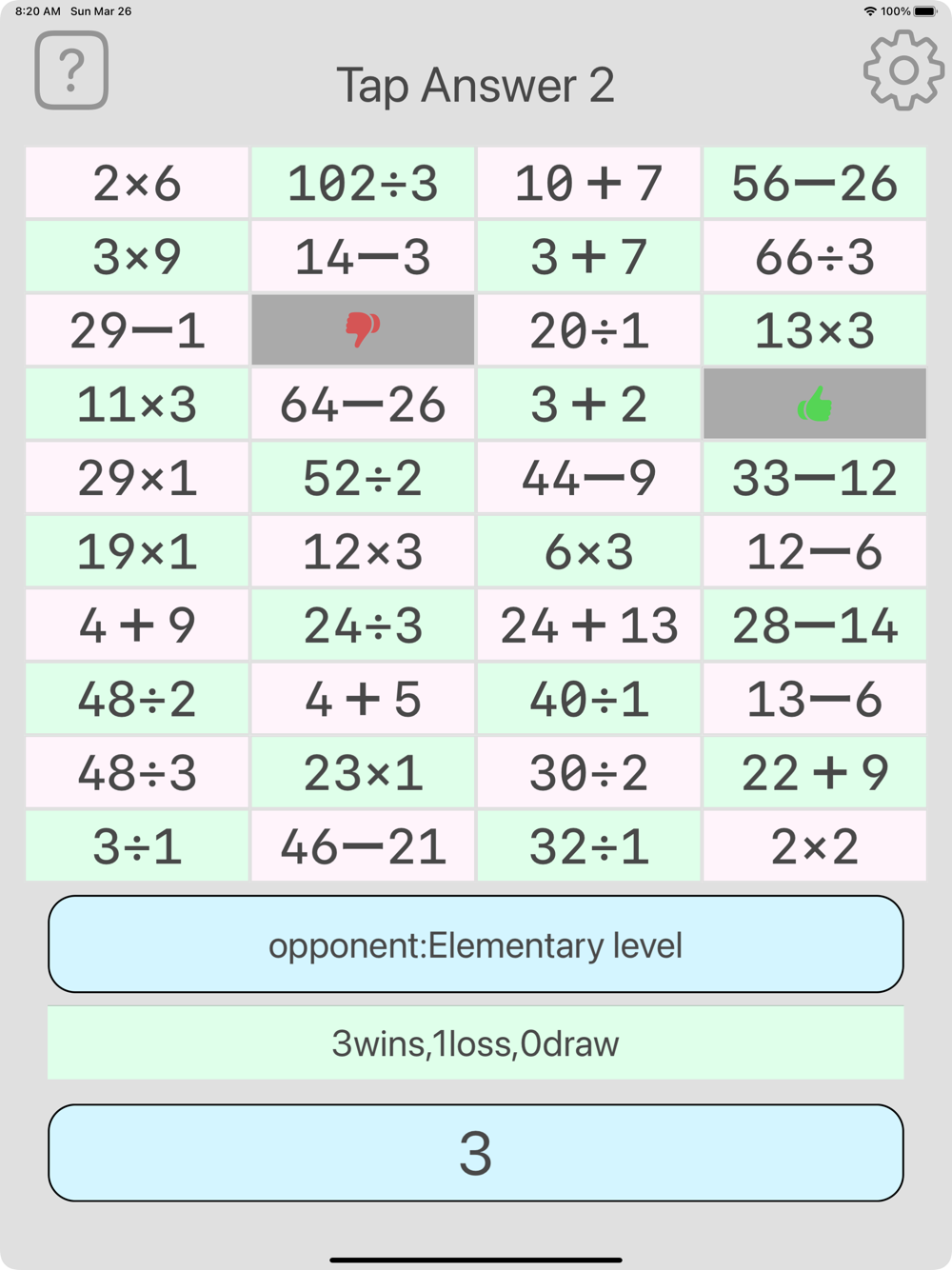 A sequential number starting from one will be displayed, so tap the cell whose calculation result is that number before your opponent.
