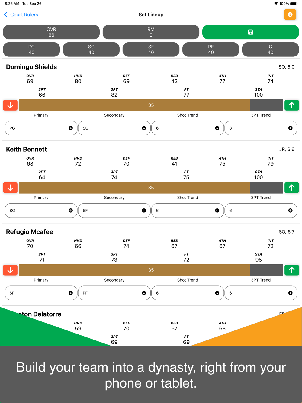 Hone your team's skills with daily practices. Develop your players and watch them grow into true basketball stars.