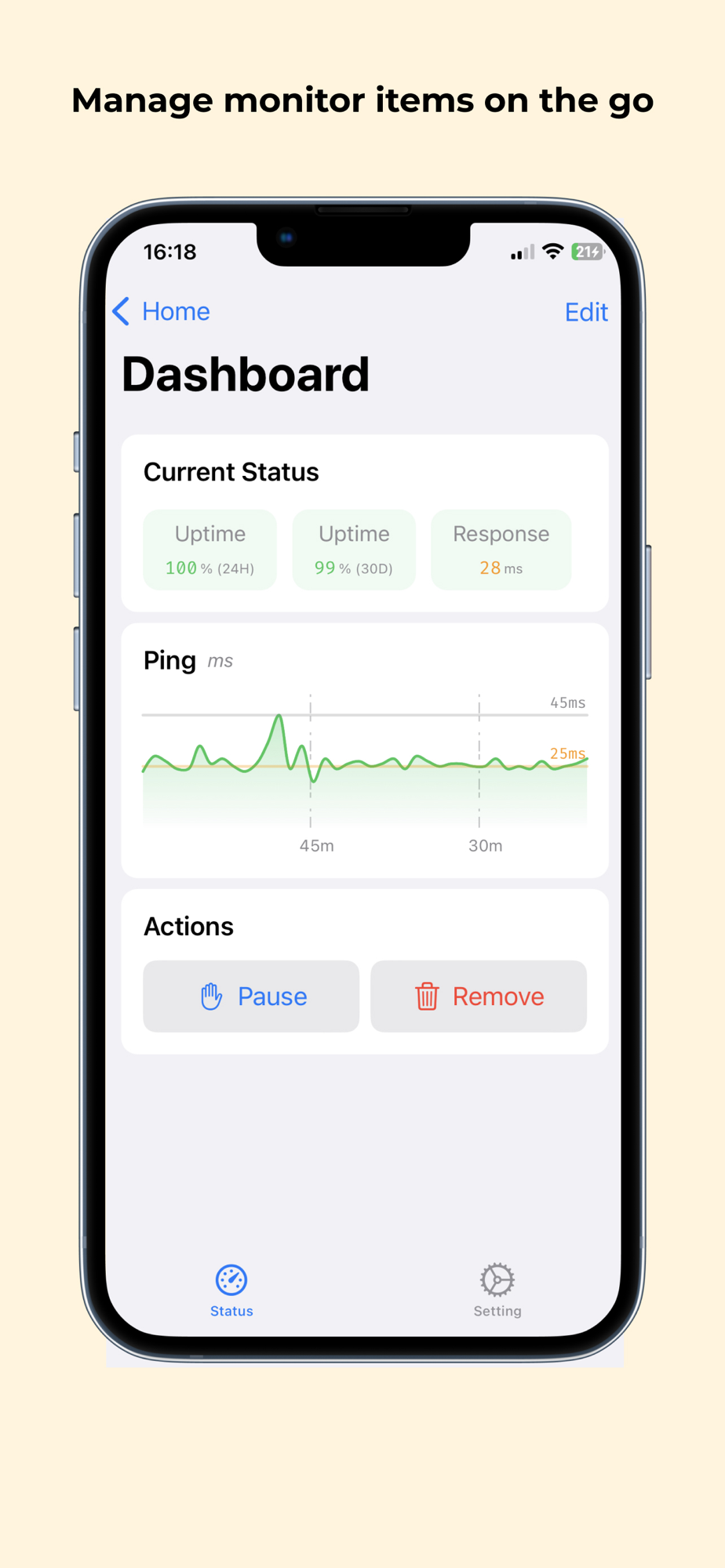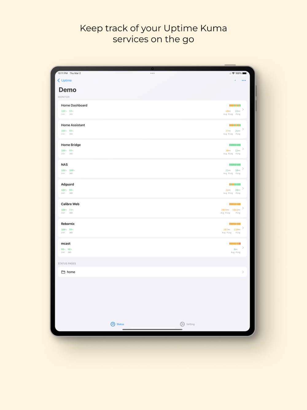 Uptime Kuma Manager allows you to connect to your Uptime Kuma servers and monitor the services directly from your phone. With a clean and simple interface, you can quickly view the status of your services and receive notifications when they go down.