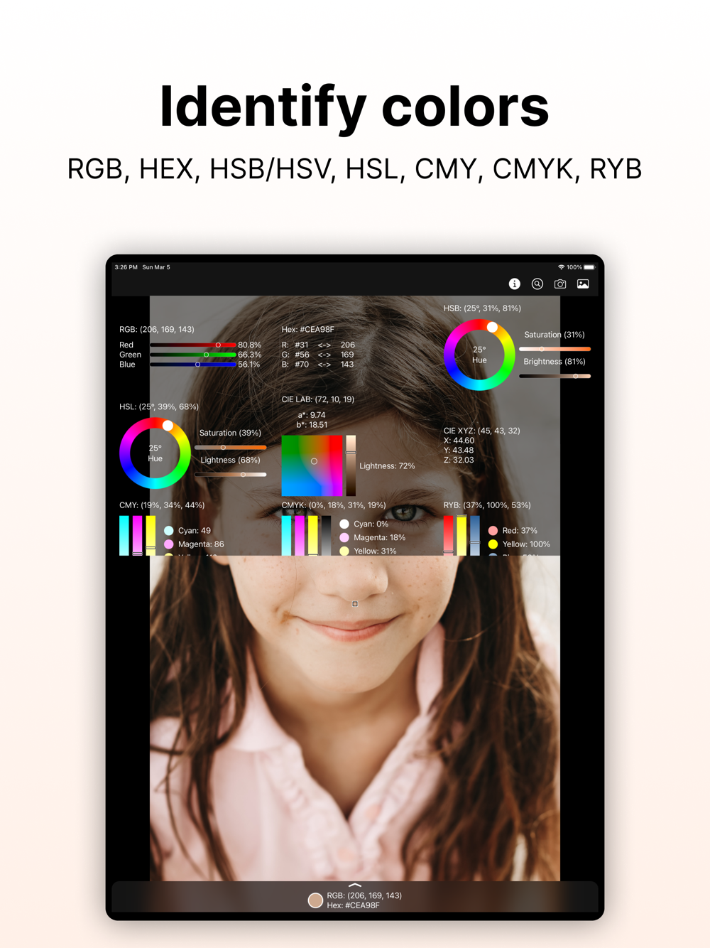 • The app supports various color models, such as RGB, HSL, and CMYK, enabling users to select colors based on different parameters.