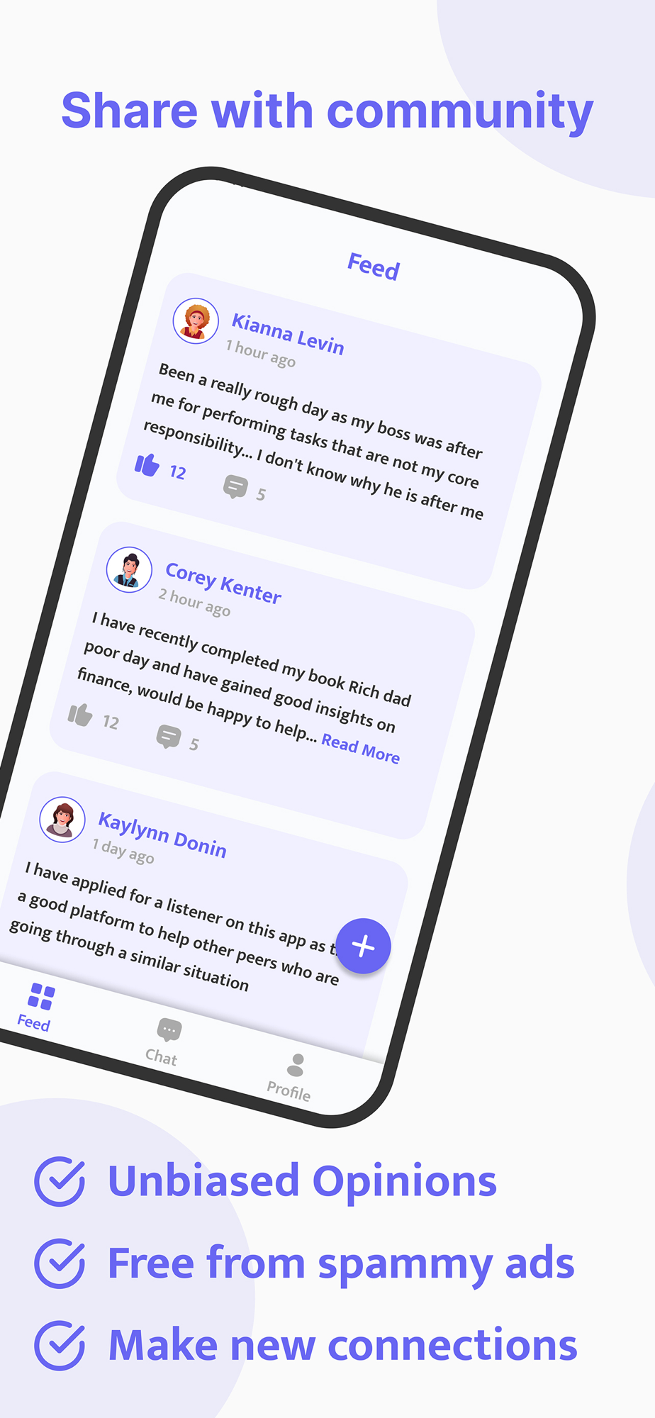 That's where COCO (Comfort Corner) comes in. Our app provides a safe and anonymous space where you can connect with trained listeners who are there to listen and support you through any challenges you may be facing and chat anonymously. COCO is designed to match you with a listener who shares your interests and can offer you guidance and support. Whether you're dealing with stress at work, relationship issues, or just need someone to talk to, our app is here for you. Our community includes people from all walks of life who are ready to listen and offer encouragement. With our anonymous chat app, you can easily connect with a listening ear without fear of judgment or stigma. Additionally, on our platform, you can share your thoughts and vent anonymously to the community to get appropriate support in form of comment conversations.