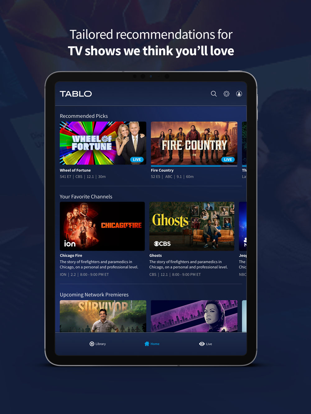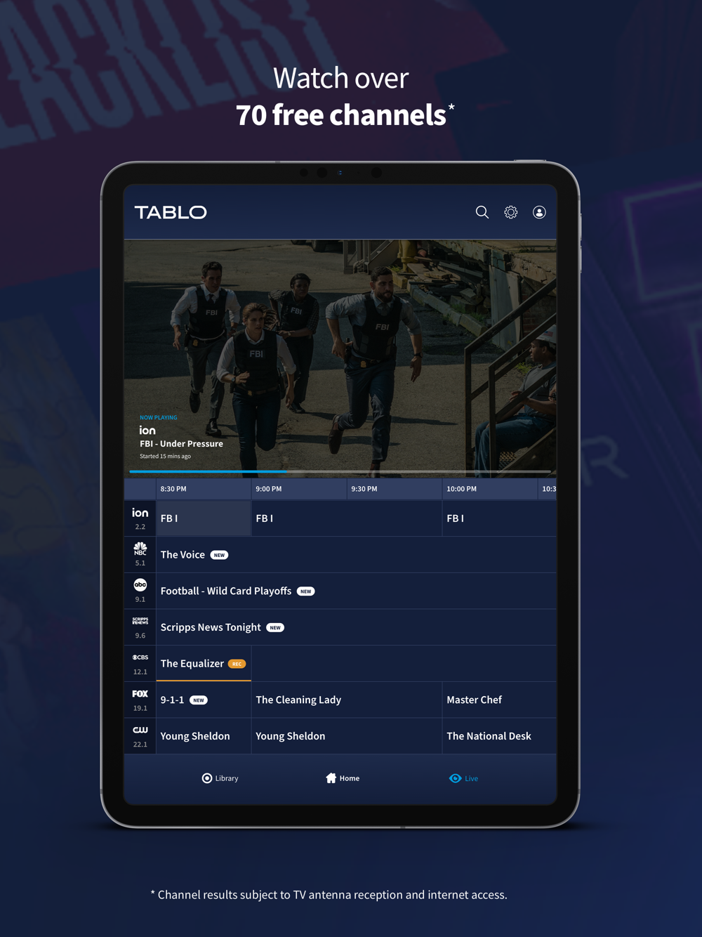 Tablo is a device that lets you watch and record live TV, with no subscription. Just one Tablo delivers antenna TV and streaming channels to every screen in your home, including your iPhone or iPad.