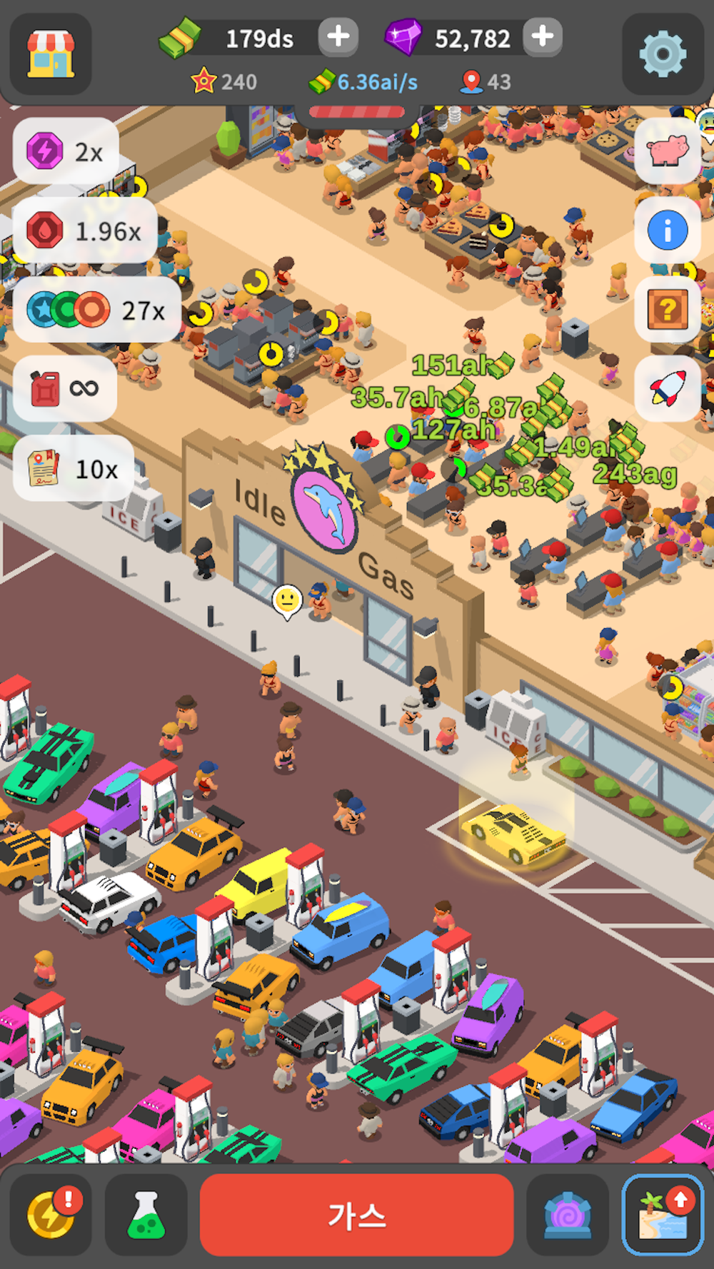 차에 주유하고, 음식과 음료를 팔고, 제품을 업그레이드하고, 주차장을 확장하며, 세계 최대의 주유소 제국을 건설하기 위한 연구를 시작하세요!