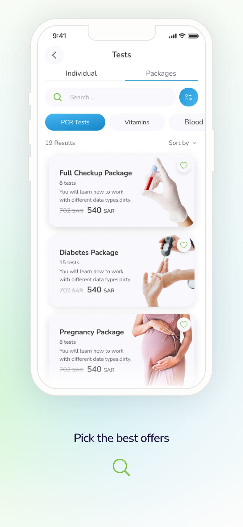 Our free app provides access to all your health needs. All you have to do is book the desired service, select the nearest location, and be ready to go!
