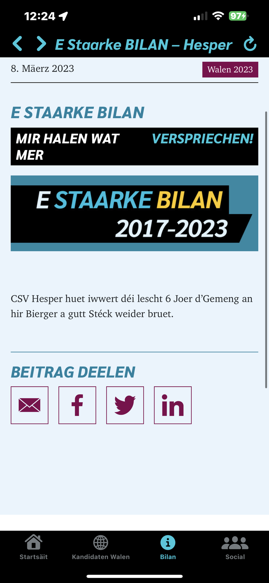 ∙ Ons Wallëscht fir d’Gemengewalen 2023 mat Informatiounen zu de Kandidaten a Kandidatinnen, dem Bilan an dem Programm,