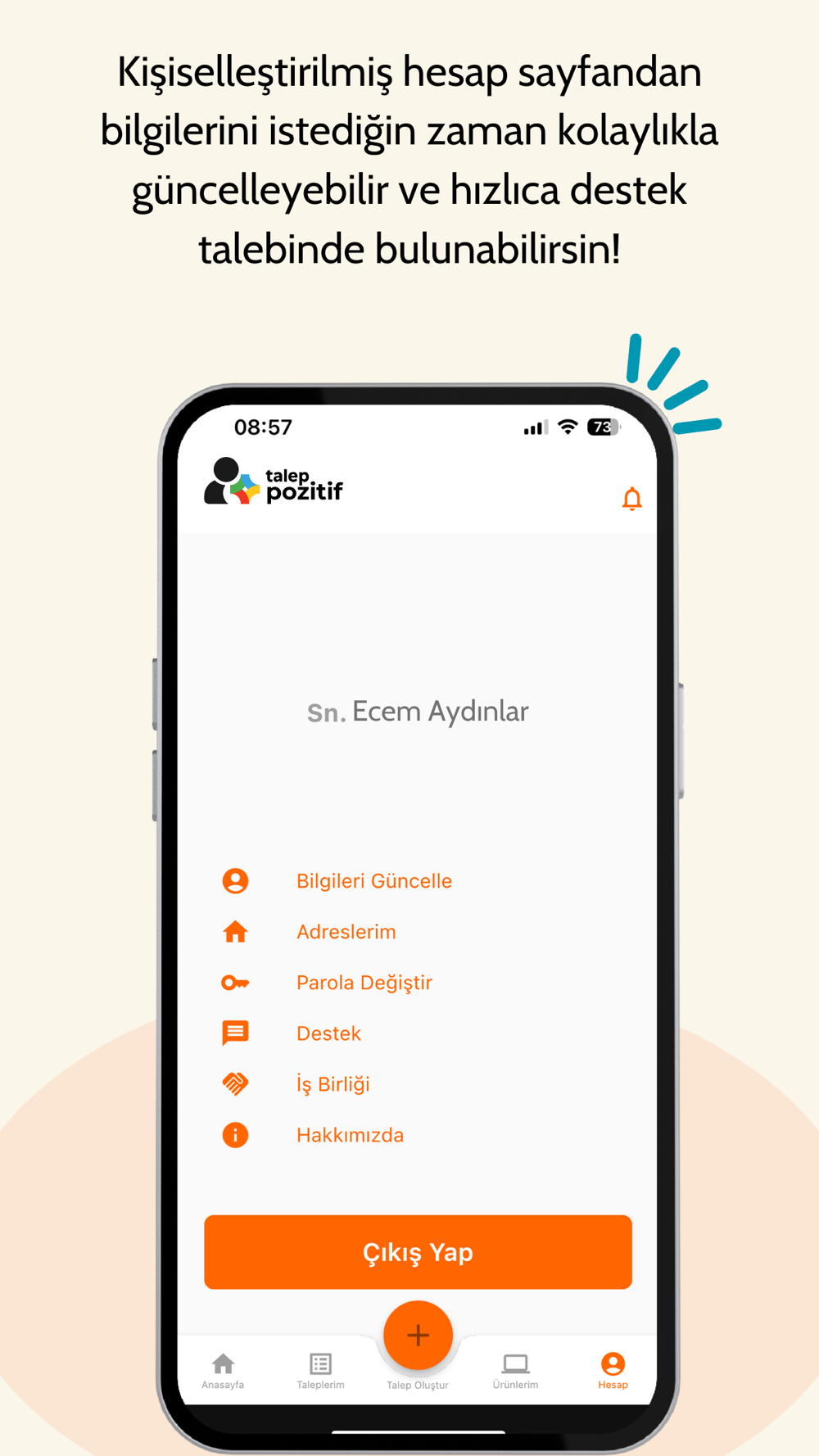 Talebiniz “Açık”, “İşlemde”, “Teklif” veya “Tamamlandı” adımlarında anlık güncellenir.