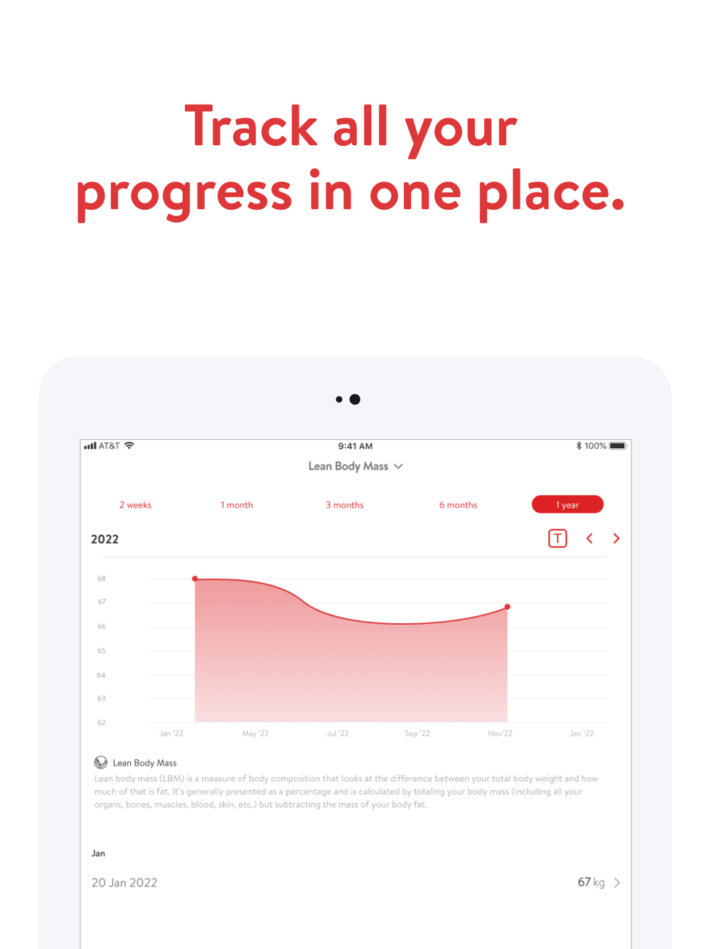 - Connect to wearable devices like Apple Watch (synced to Health app), Fitbit and Withings to sync body stats instantly