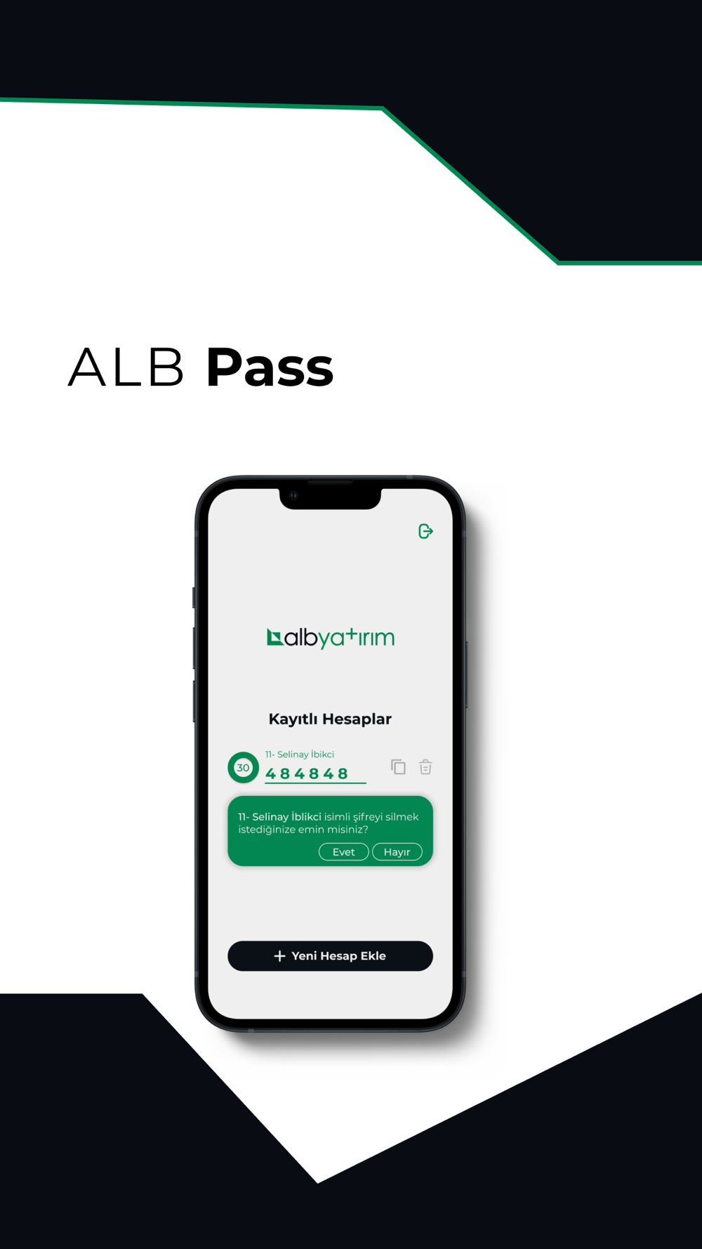ALB Pass Uygulaması, telefonunuzda ALB Yatırım hesabınıza güvenli bir şekilde erişebilmeniz için 2 Adımlı Doğrulama kodu oluşturur.