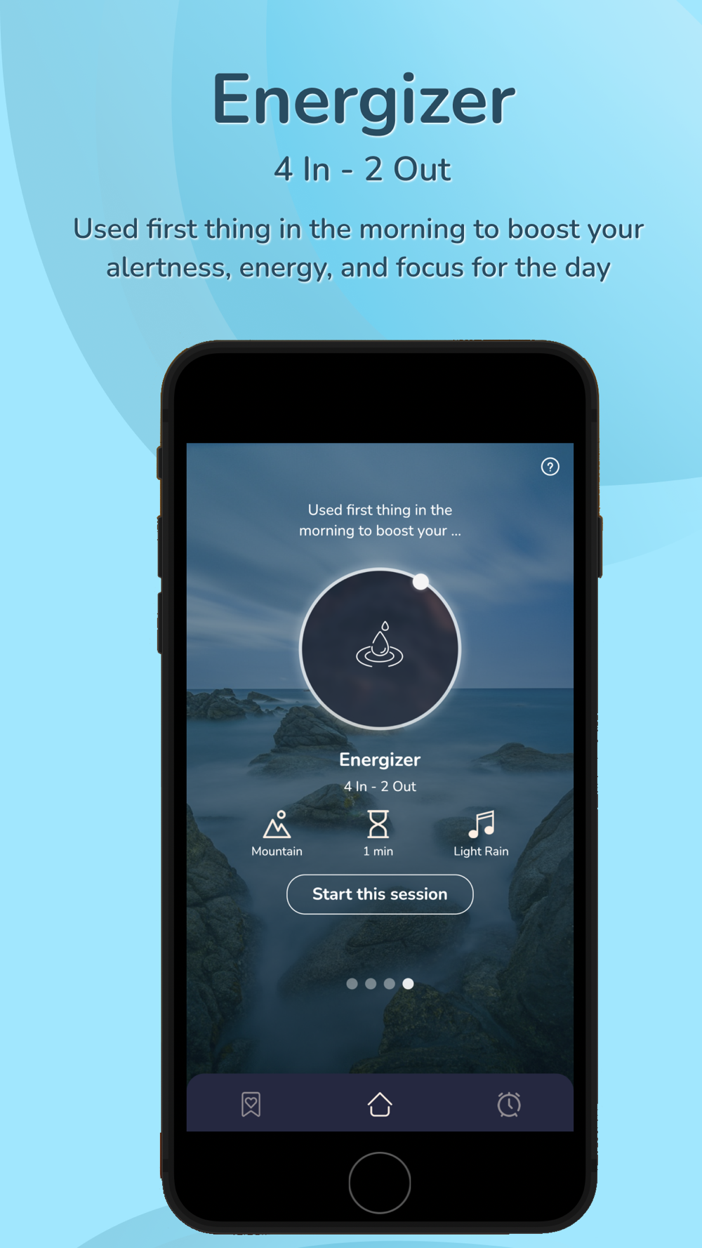 - Energizer (Energy): Inhale 4s, exhale 2s