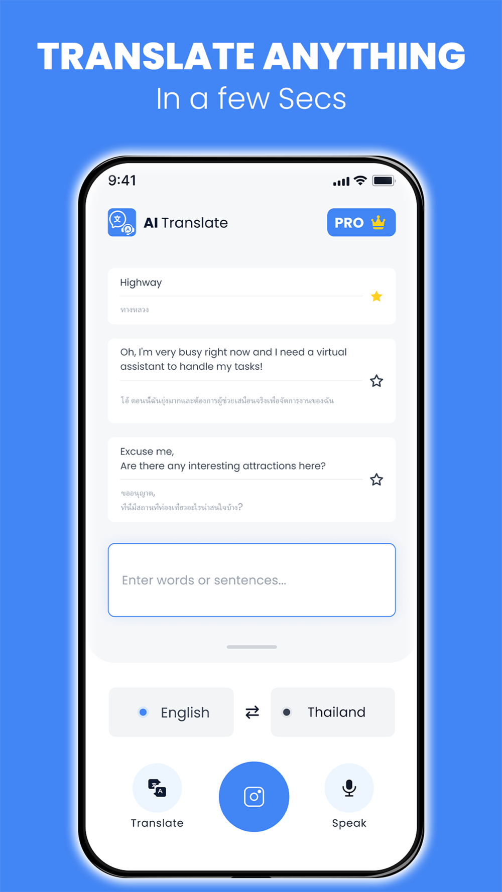Experience the power of artificial intelligence to communicate like a native speaker with AITranslate. AITranslate: Text, Photo & Voice is the perfect solution for anyone who needs a reliable and efficient language translation tool. Thank you for considering an AITranslate app for your translation needs. We would love to receive all your feedback to improve our app.