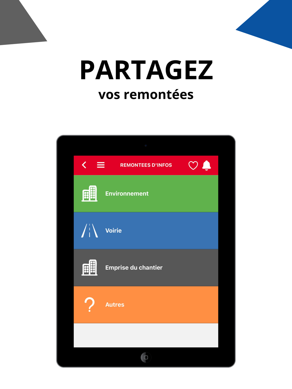 Ses fonctionnalités simples permettent de suivre l’actualité du chantier, de retrouver l’ensemble de nos publications ou bien de nous remonter vos suggestions.