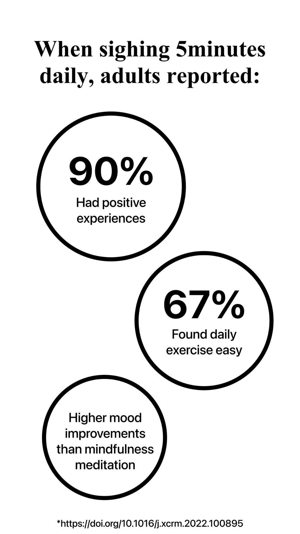 Cyclic sighing can help breathe away anxiety. The Sigh app focuses on cyclical breathing which has been shown to improve mood and reduce respiratory rate more effectively than mindfulness meditation. While also reducing negative emotions including state anxiety.