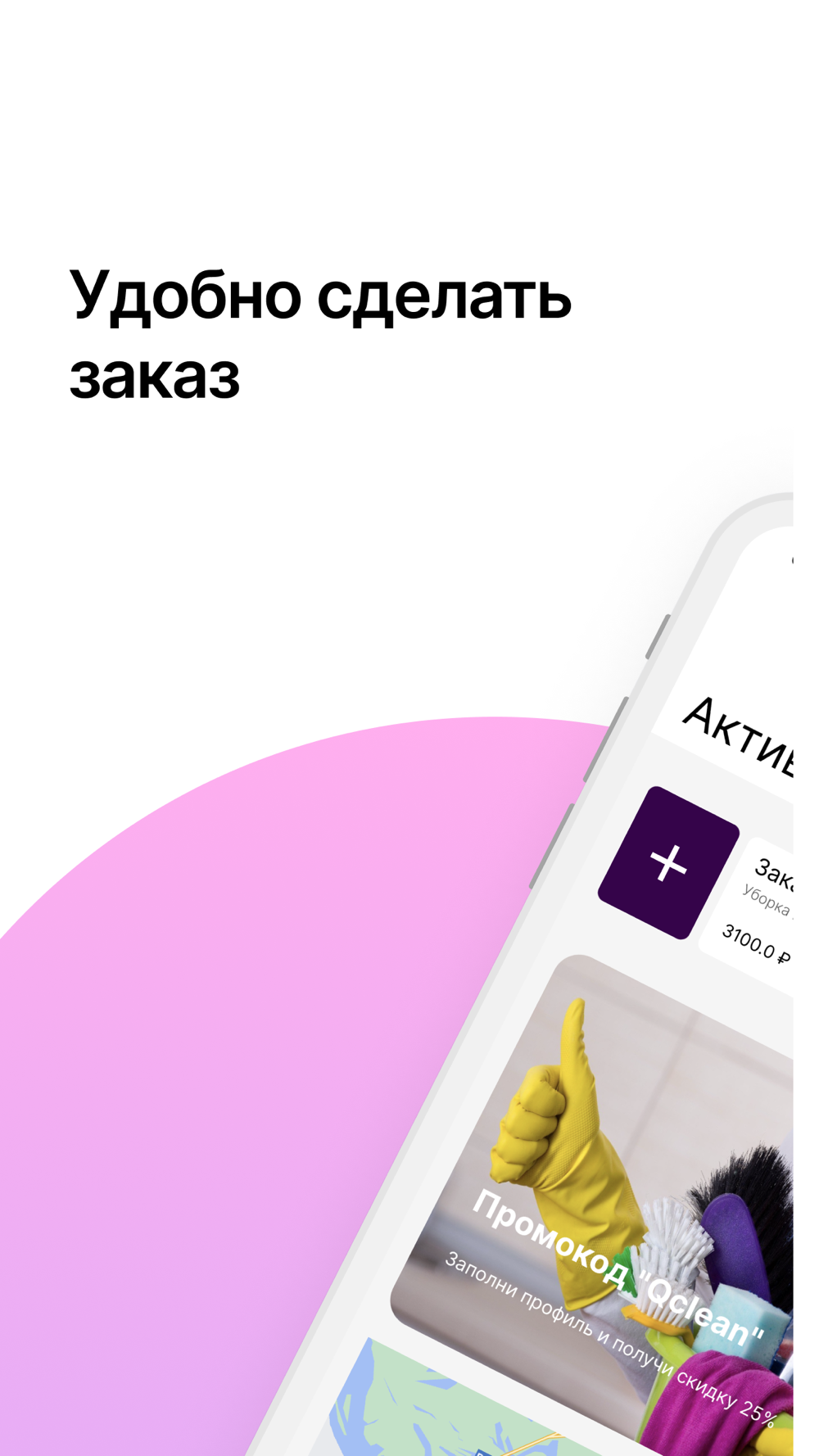 Первое приложение по вызову клинеров онлайн. Пара кликов и команда по уборке уже едет к Вам.