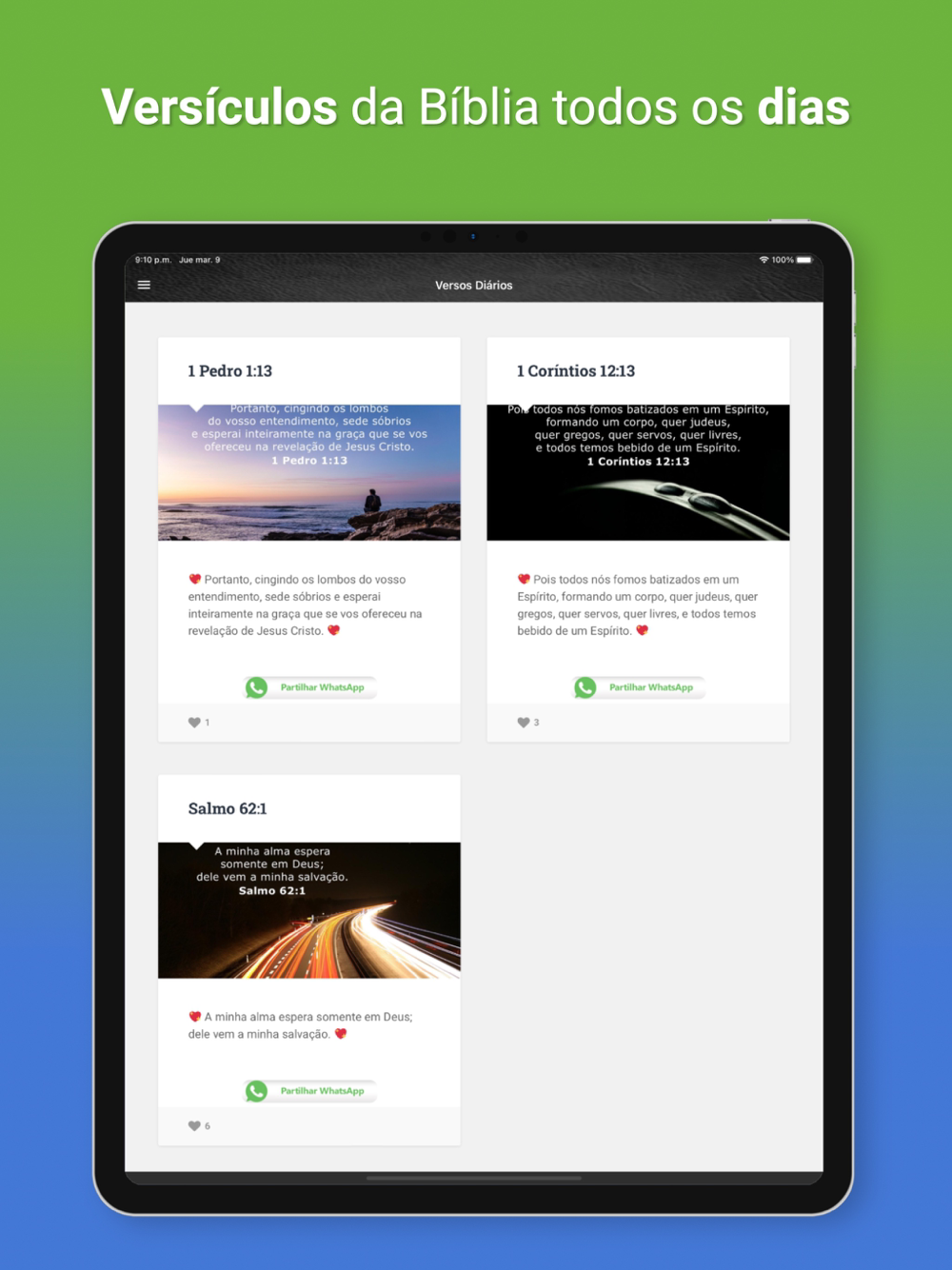 Receba uma notificação diária com uma palavra de Deus especialmente para você, tornando a sua rotina mais inspiradora.