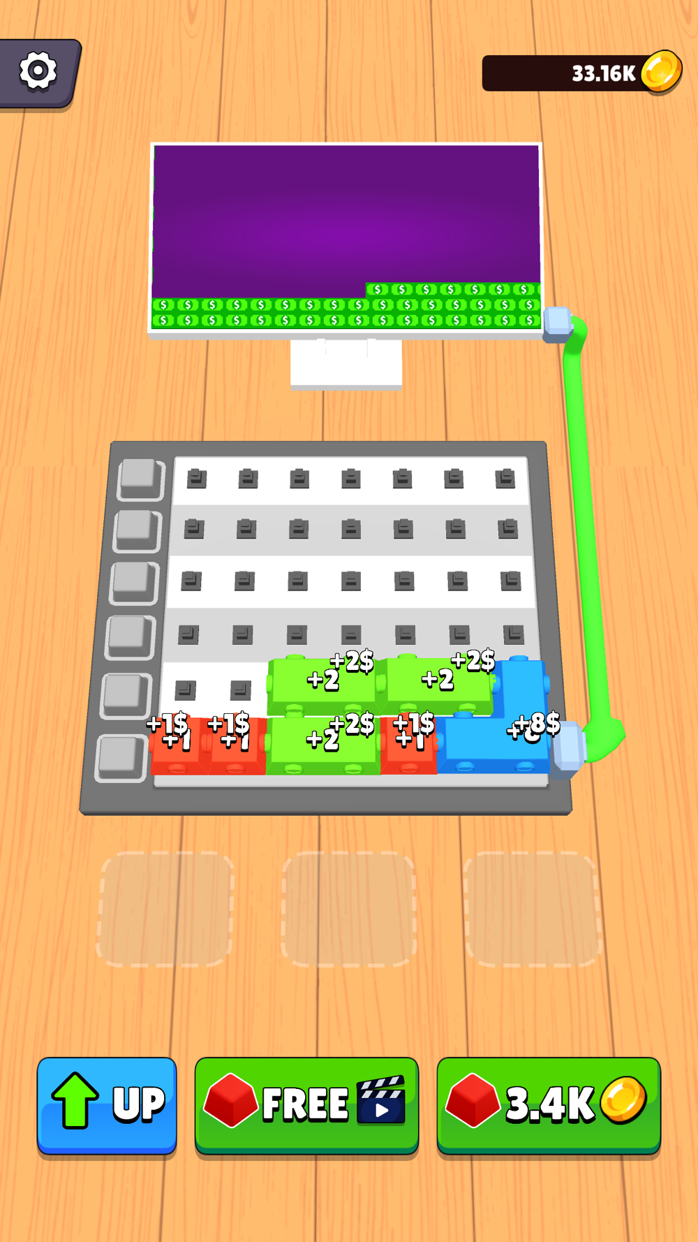 Merge and upgrade your buttons, Place your buttons to create your own keyboard and start to gain coins!!