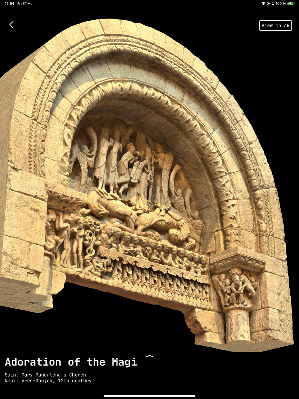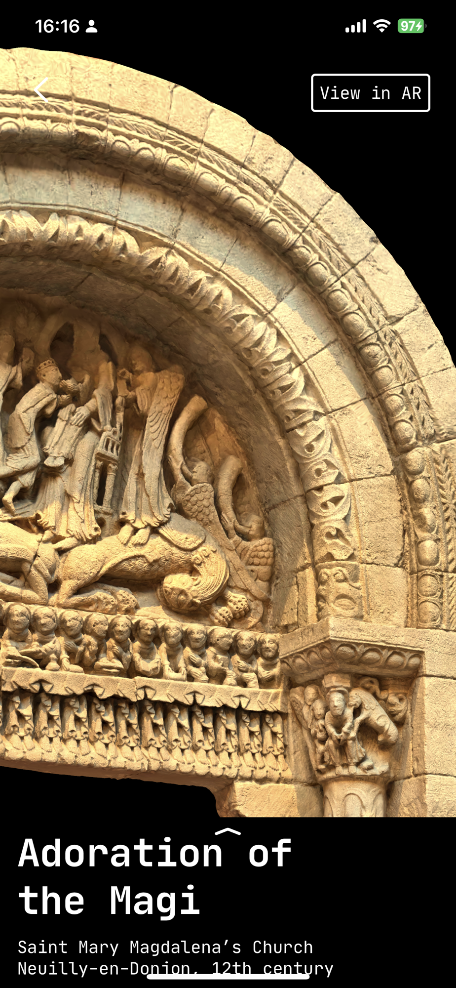 Gilbertus is an augmented reality app which displays 3D scans of a series of French monumental sculpture. It offers a three-dimensional and immersive preview of an artwork while being at a distant place. It is designed as the virtual reinterpretation of the Museum of Compared Sculpture initiated by the renown French architect Eugène Viollet-le-Duc. The Museum’s collection, made of plaster copies of numerous medieval French sculptures is today exhibited at the Gallery of Casts at the Cité de l’architecture in Paris.