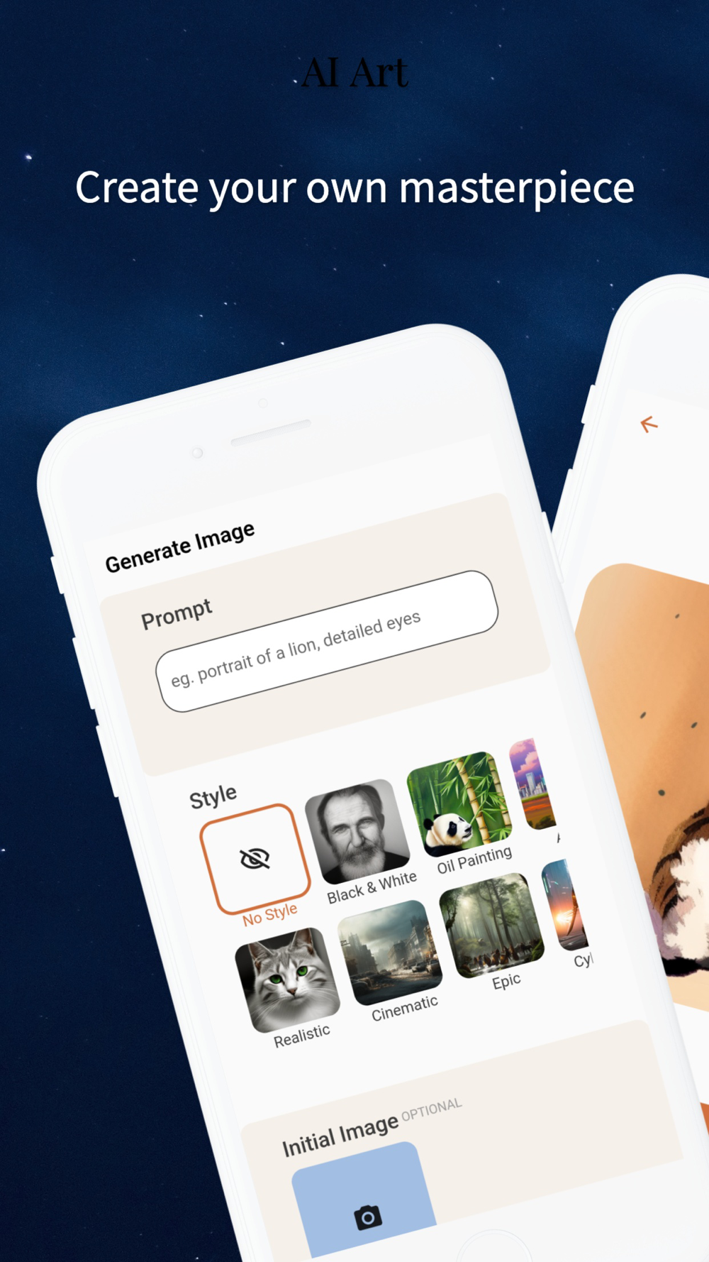 Introducing the AI Image Generation app - a revolutionary app that lets you unleash your creativity by creating stunning images with a simple prompt! With our app, you can choose from a variety of styles and let the AI do the rest.