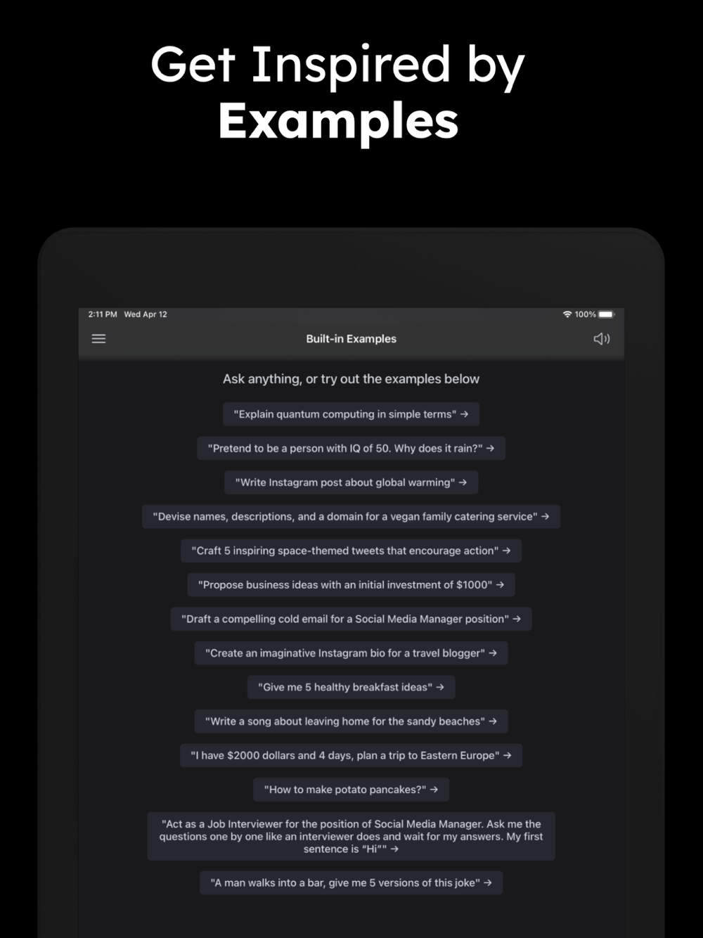 - Creative assistance: offer creative ideas, suggestions, and even generate content like articles or social media posts, helping you overcome writer's block and stimulate their creativity.