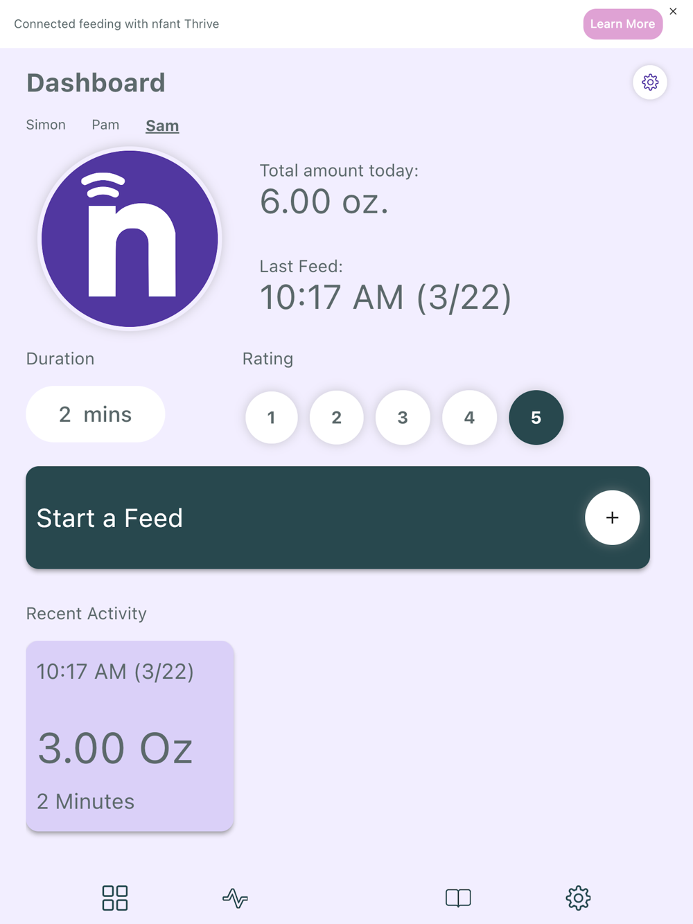 The nfant® Tracker App combines biofeedback data with parent intuition to help you confidently respond to your baby’s cues and customize every feeding to your baby’s unique needs.