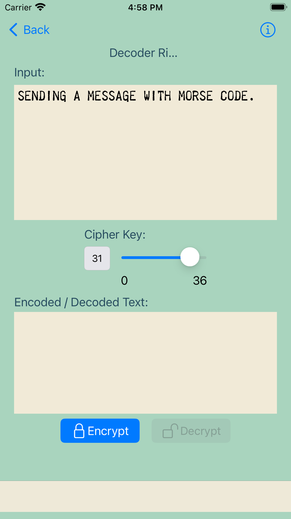 If you want to encode it, select the cipher button, there you can encode or decode a message.