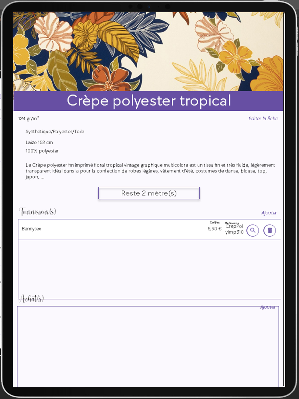 > Gestion de votre stock de tissus avec impression d'étiquette (QR CODE) pour retrouver plus facilement les informations de vos matières d'œuvre.