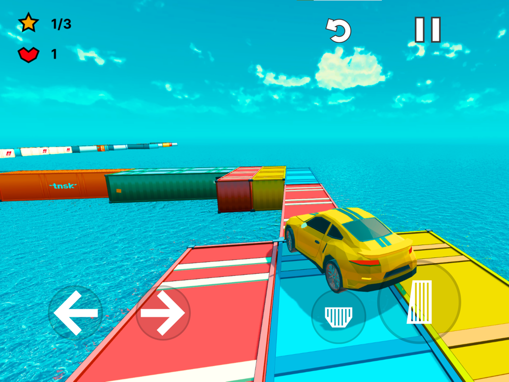 Embark on an exhilarating driving adventure in this thrilling game! Prepare yourself for an adrenaline-fueled experience as you take on the challenge of collecting stars while maneuvering cars on top of shipping containers, precariously positioned amidst vast open waters.