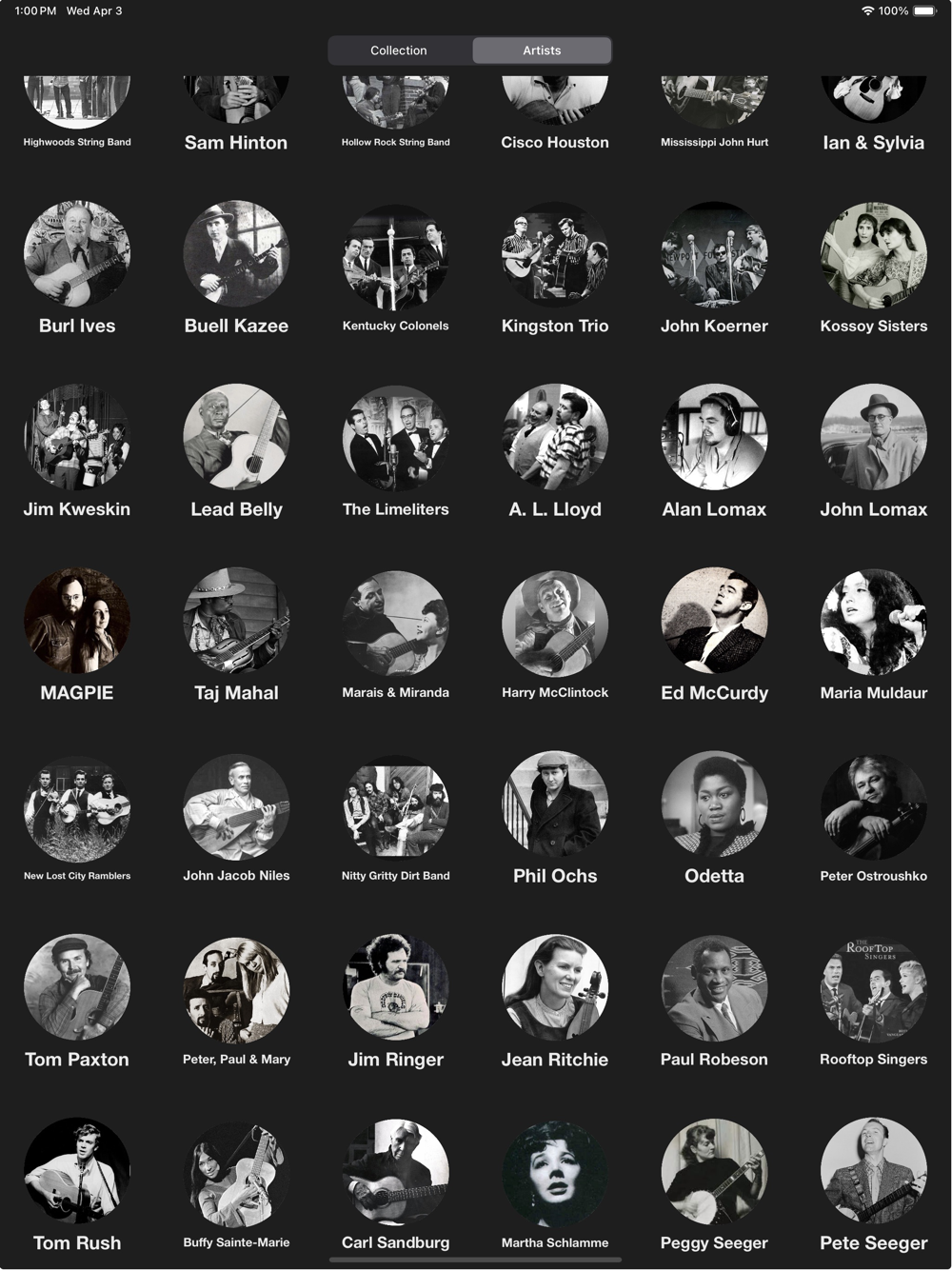 Mid-Century Modern Music makes apps that allow you to discover, or rediscover, music from the Mid-Century Modern era. There’s a lot of classic folk albums available in Apple Music. So many that we were able to almost fully recreate the six album boxed set of albums put out by Grammy-nominated folklorist Norm Cohen in 1990, called "Folk Song America". This boxed set contained one hundred songs, and we've got them all. Each one annotated with information from Norm like; why they're important, how they came to be, where they came from, and who else covered them. Often this information includes links to other songs and albums, also included in the app.