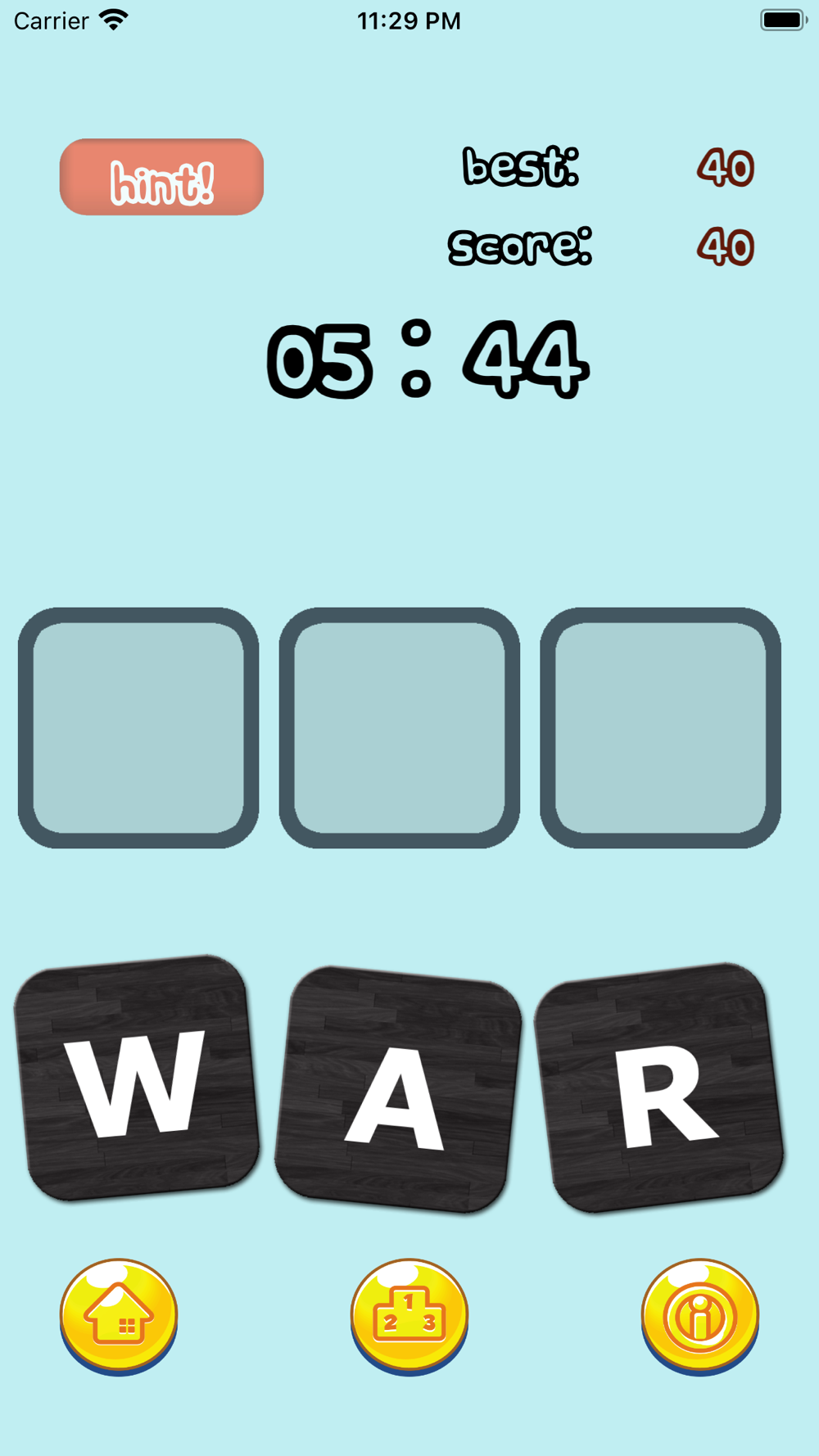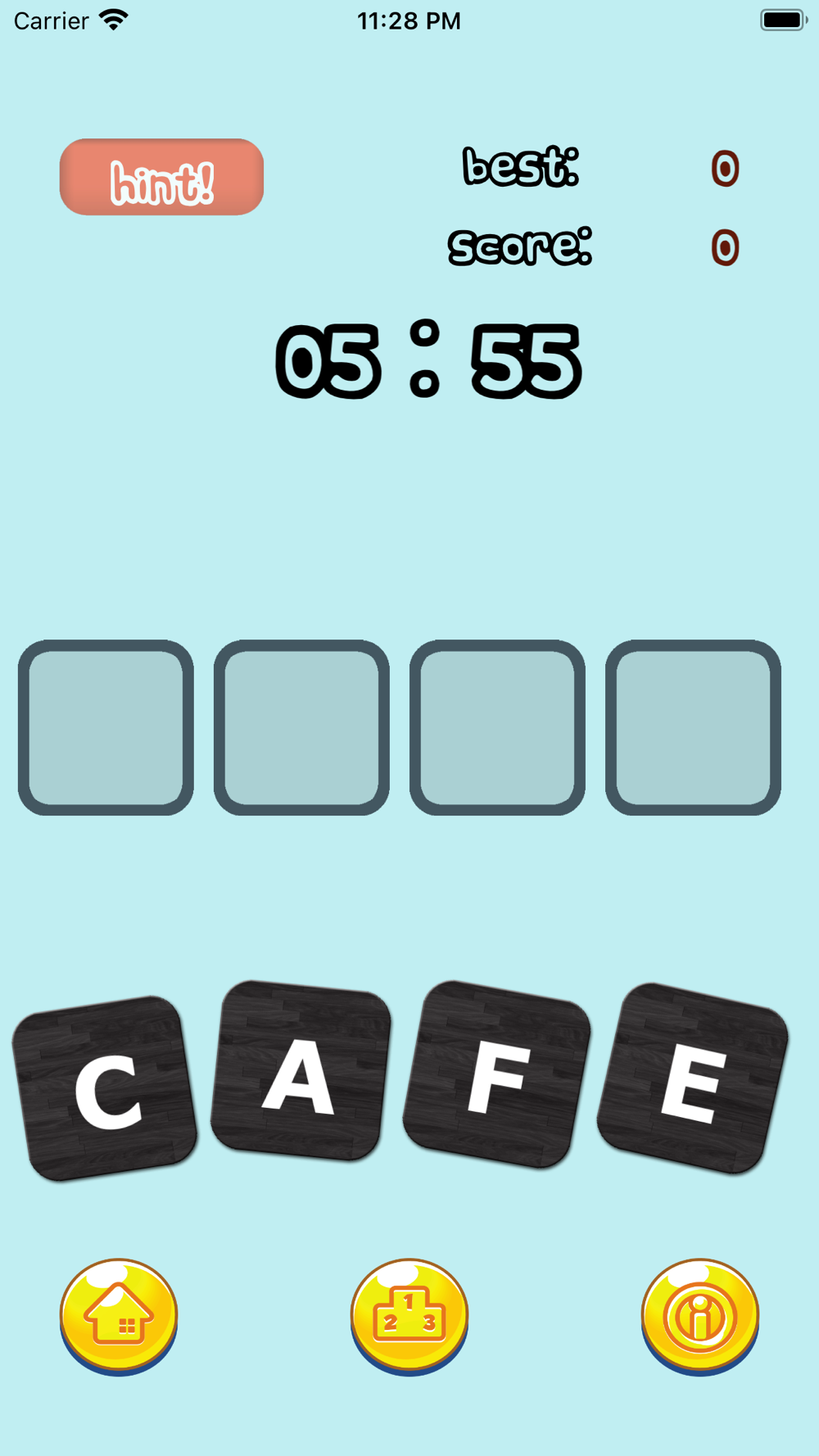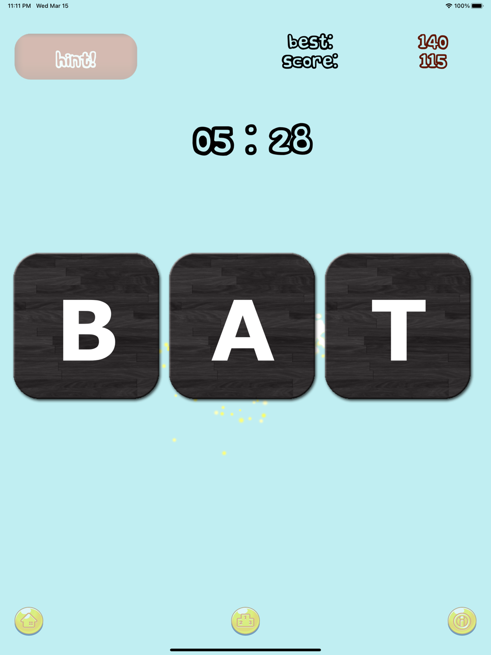 Try to rearrange letter tiles to form new word. Click hint button if you are stuck. How many word puzzles can you solve?