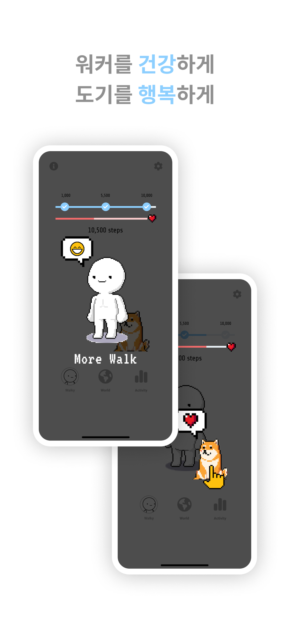 - 꾸준히 많이 걸으면 워커가 점점 더 건강해져요!