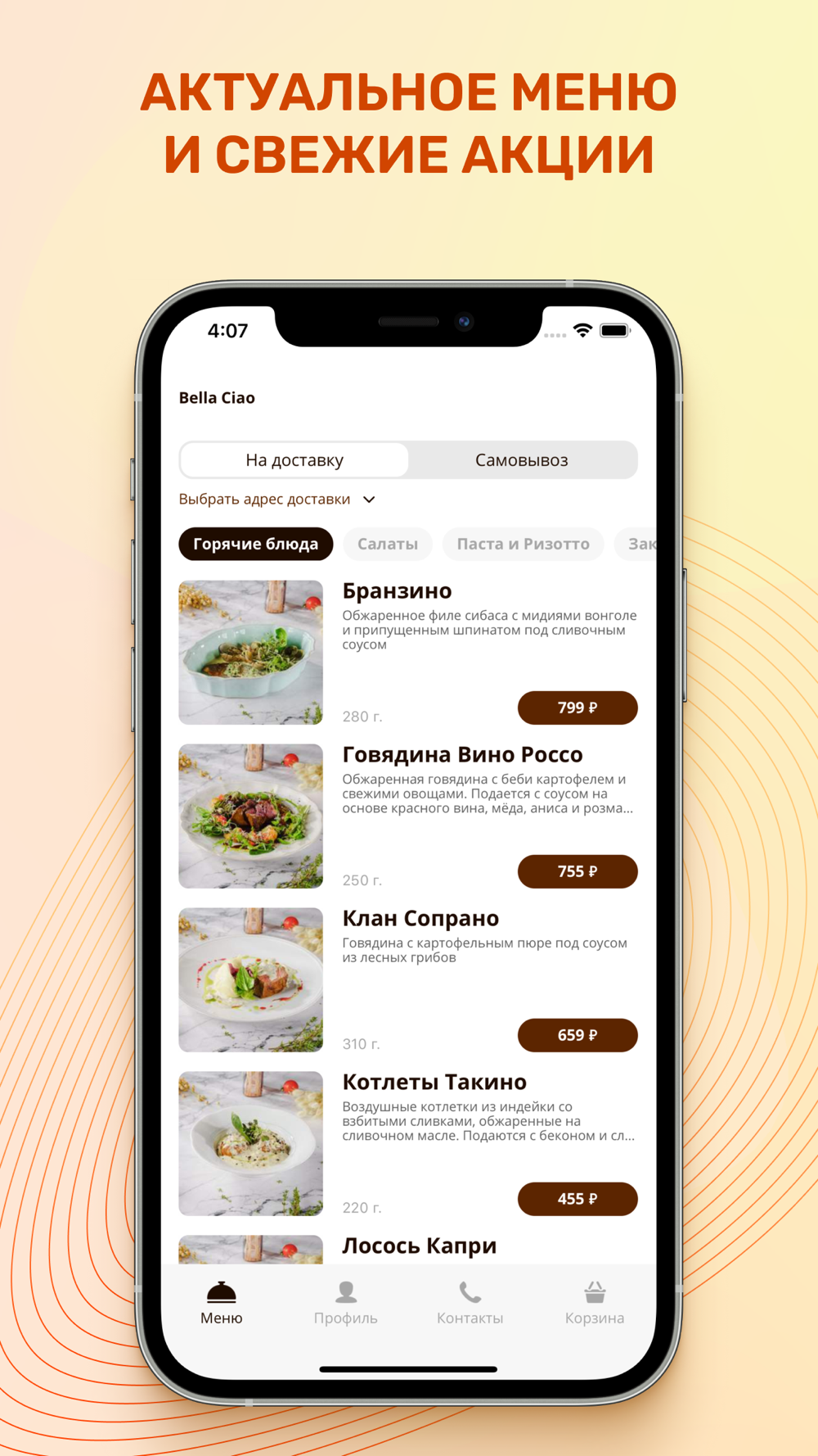 Прекрасная девушка Белла приехала в Ставрополь из Италии и открыла свой ресторан, чтобы принести в город кусочек уютной Италии, который будет напоминать ей о доме. Меню в Bella Ciao — это книга рецептов самой Беллы, а она всегда любила вкусно поесть, так что здесь вы точно найдёте блюдо, которое покорит вас в самое сердце. СЛАВА О НАШЕЙ НЕПРЕВЗОЙДЕННОЙ КУХНЕ РАСПРОСТРАНЯЕТСЯ СО СКОРОСТЬЮ ПРОБКИ, ВЫПУЩЕННОЙ ИЗ БУТЫЛКИ ПРОСЕККО!