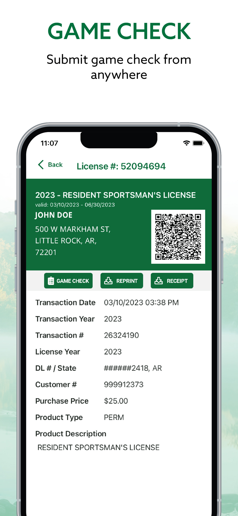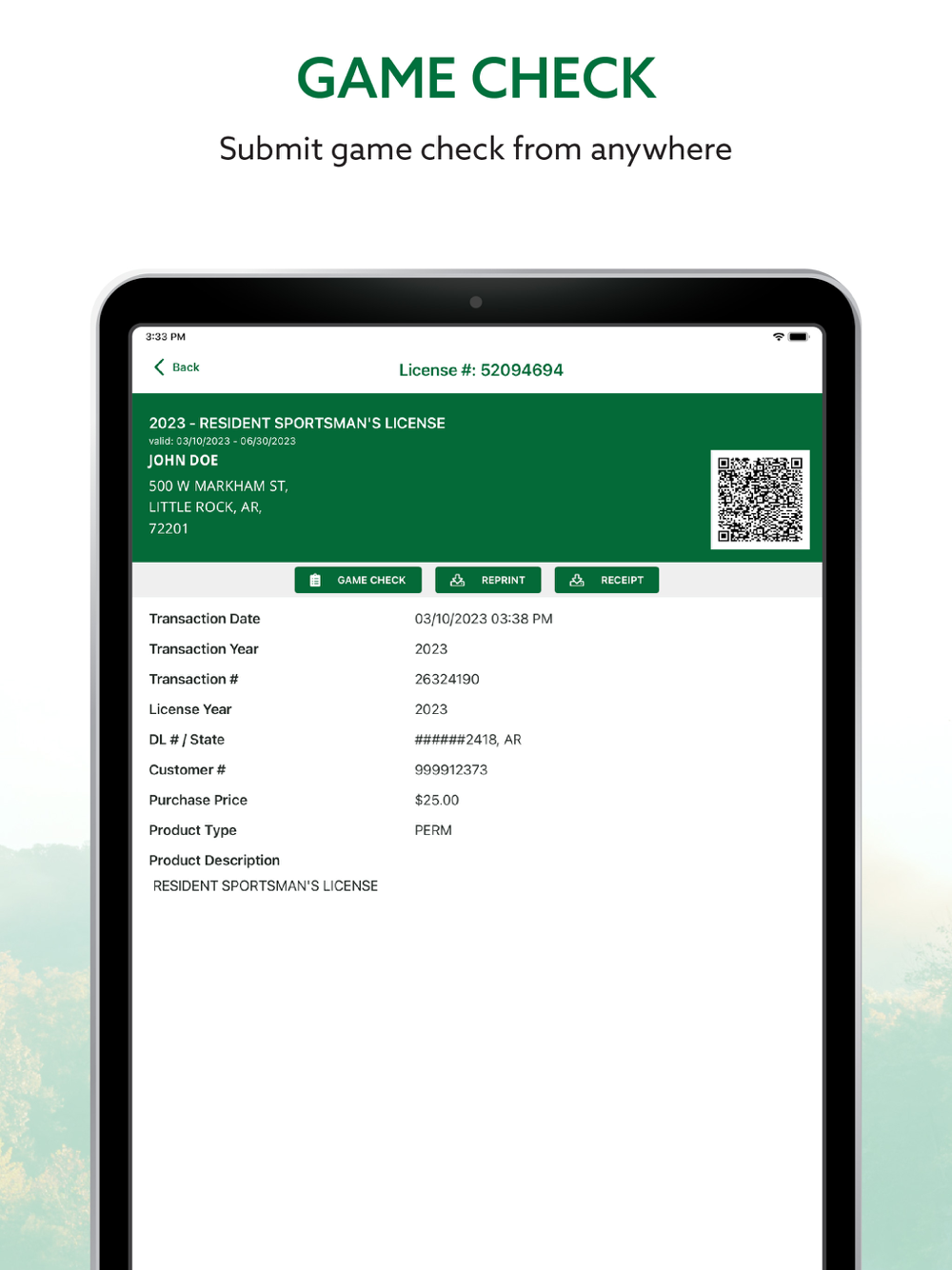 · Customer Account- create or sync with an existing account in Arkansas's Wildlife License System