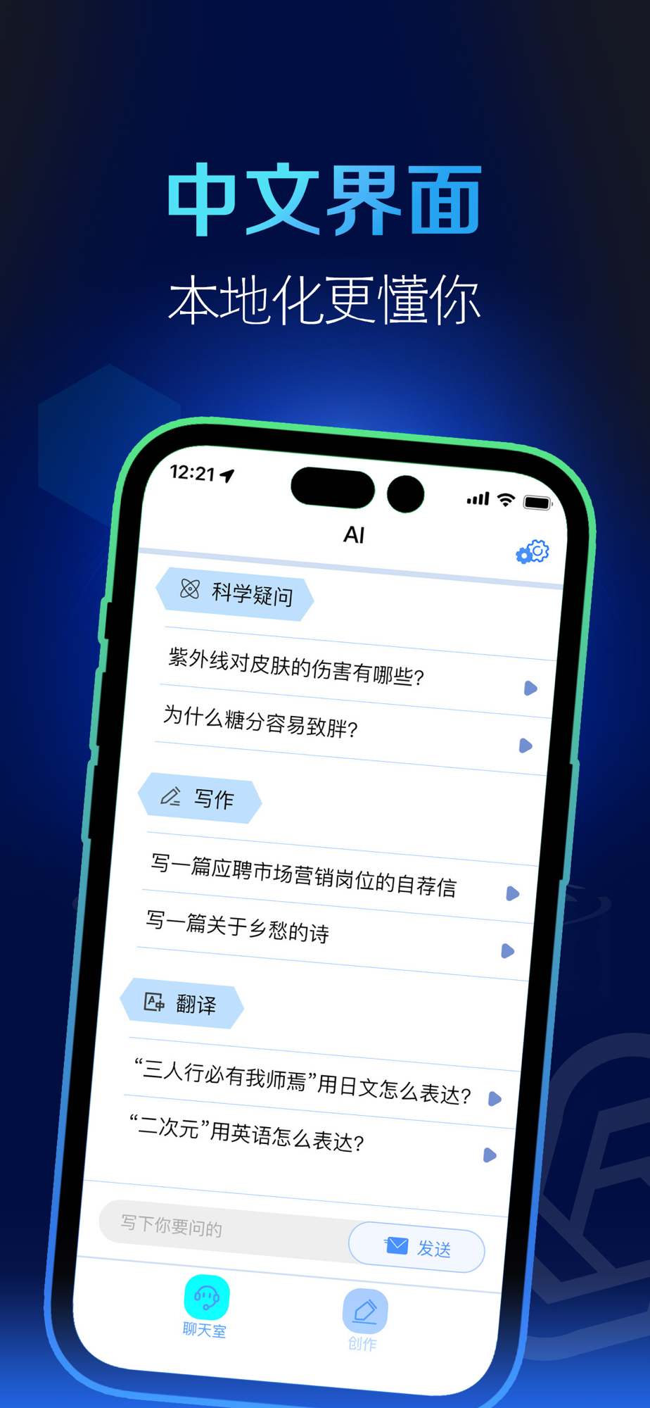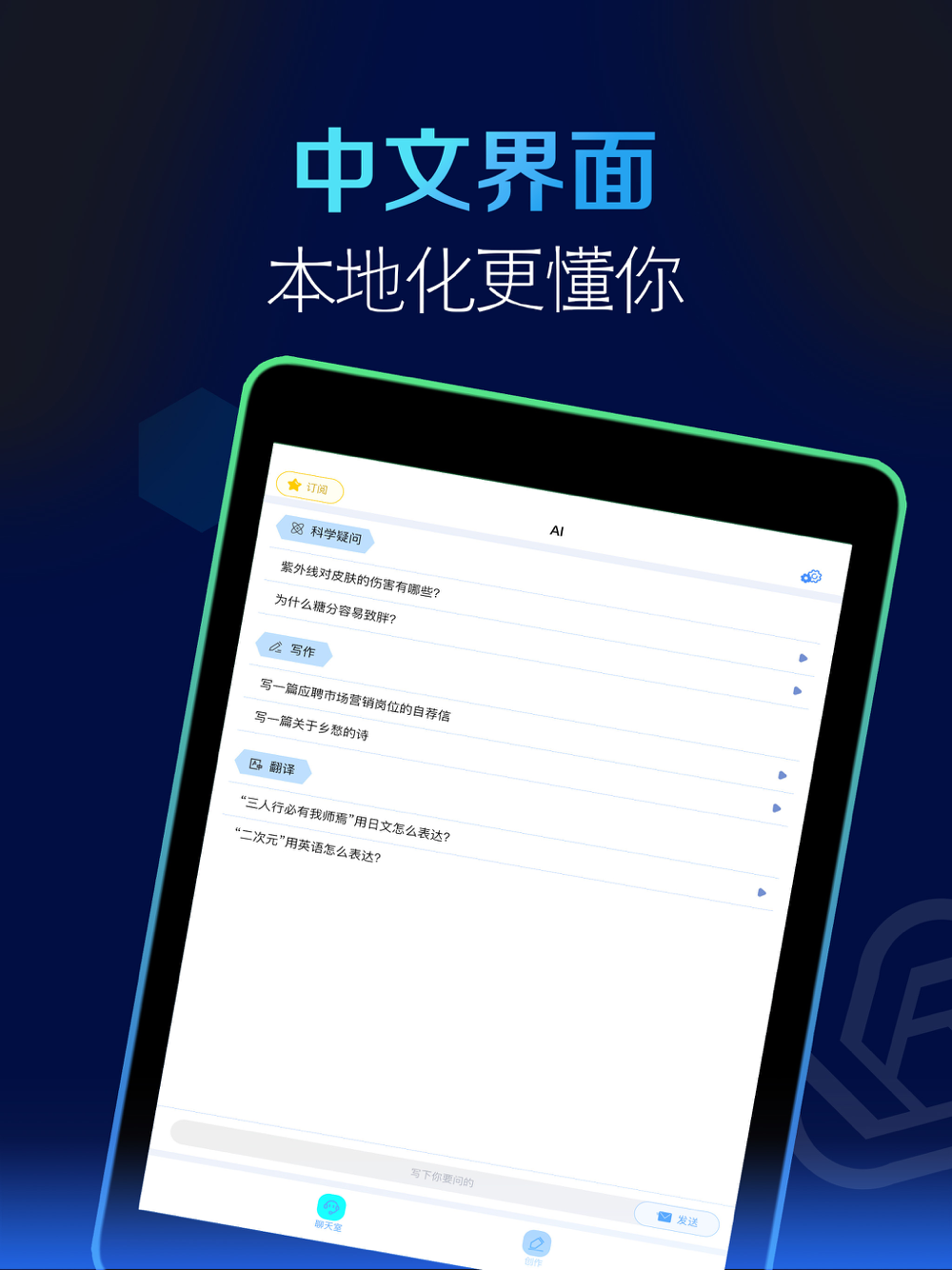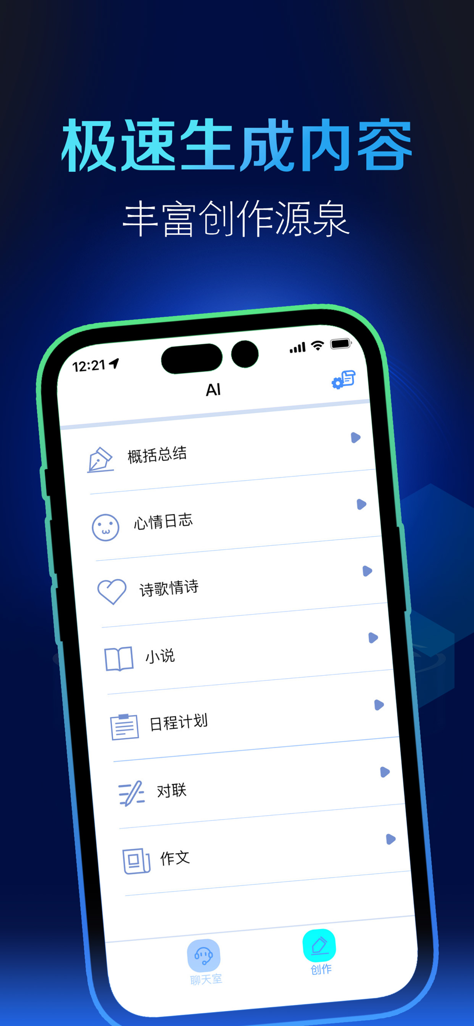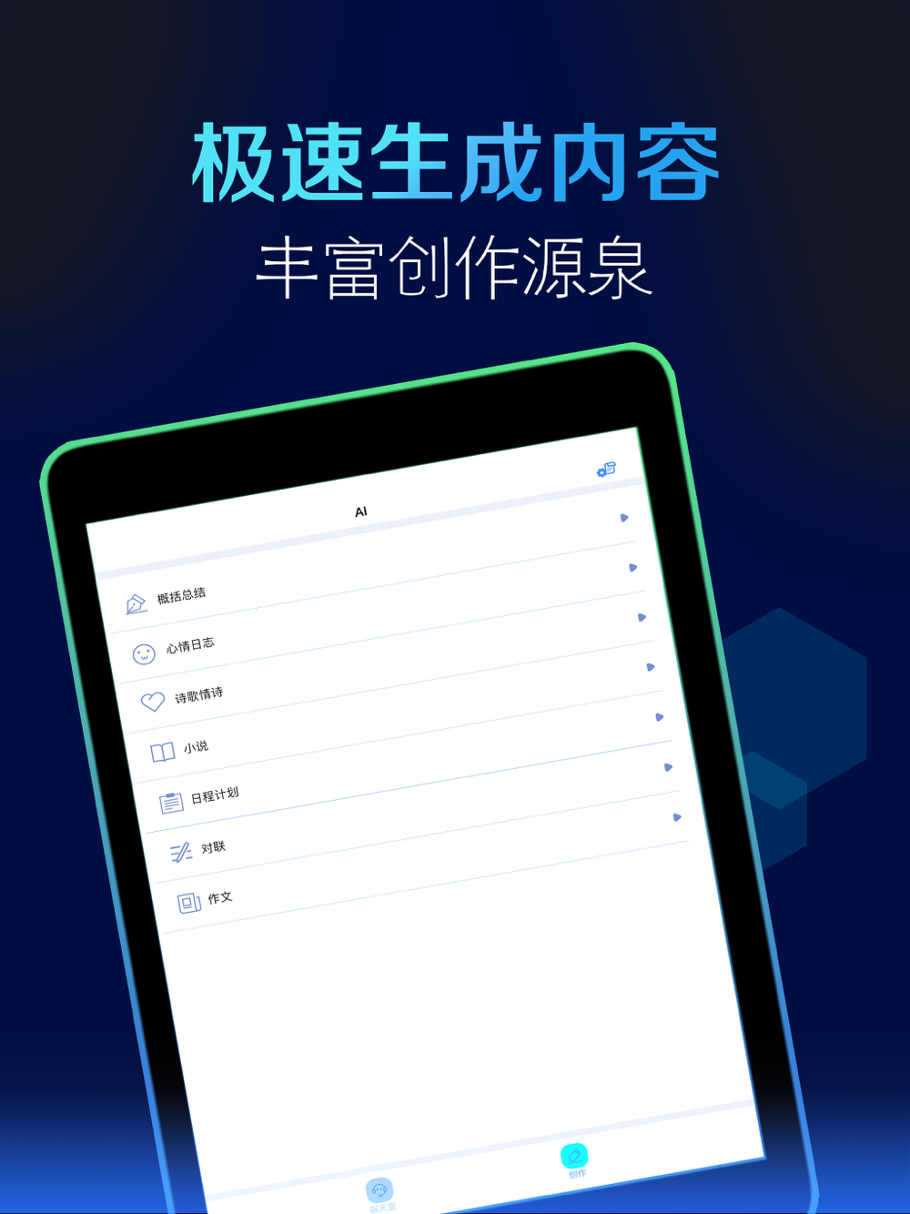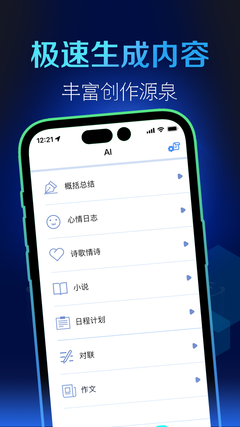 ChatAi Plus是一款极其强大的AI人工智能助手。它可以很科学的回答你的各种疑问,诗词歌赋、小说作文、心情日志、对对联、翻译、日程计划等等都可以轻松应对,均不在话下。它甚至还可以帮你写代码,不是程序员也可以完成一行行的代码哟。它绝对是一个革命性的人工智能信息APP,让你的生活更加充满娱乐跟富有趣味,赶紧下载享受吧。