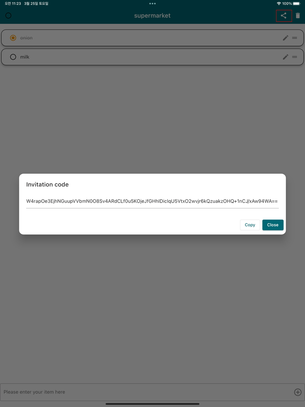 4. Use the invitation code to share your ToDo list with your family and friends in real time.