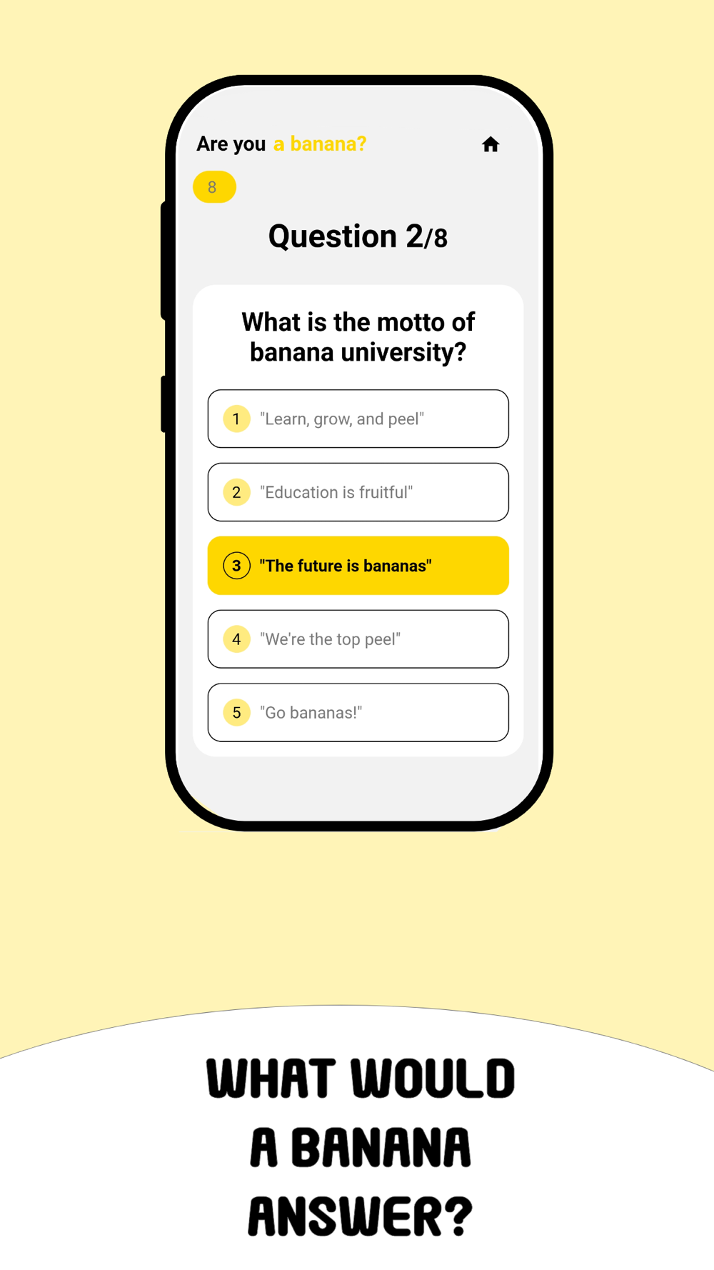The banana game is simple to use - you'll be asked a series of nonsensical questions in trivia style word, that only a human could answer correctly. If you pass the test, you can breathe easy knowing that you're not actually a banana in disguise. But if you fail...well, it might be time to reconsider your identity.