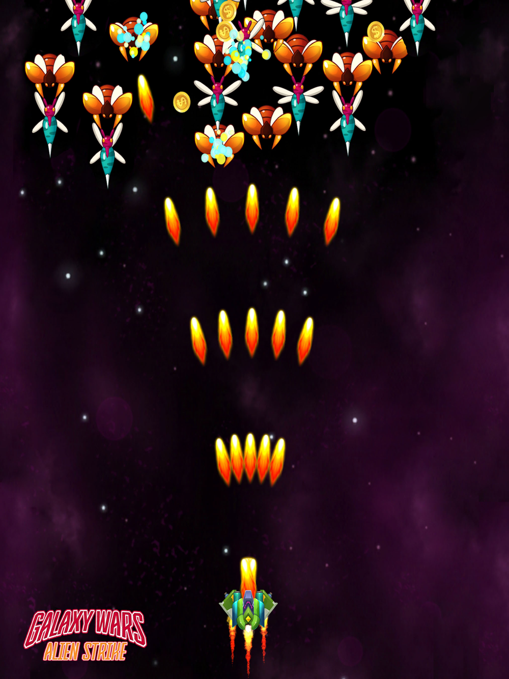 Galaxy Wars Alien Strike is a classic shooting game,Use your flight experience to operate your spaceship,you will have to get rid of a large number of alien while dodging their bullet attacks.