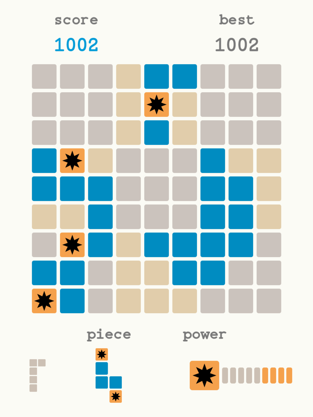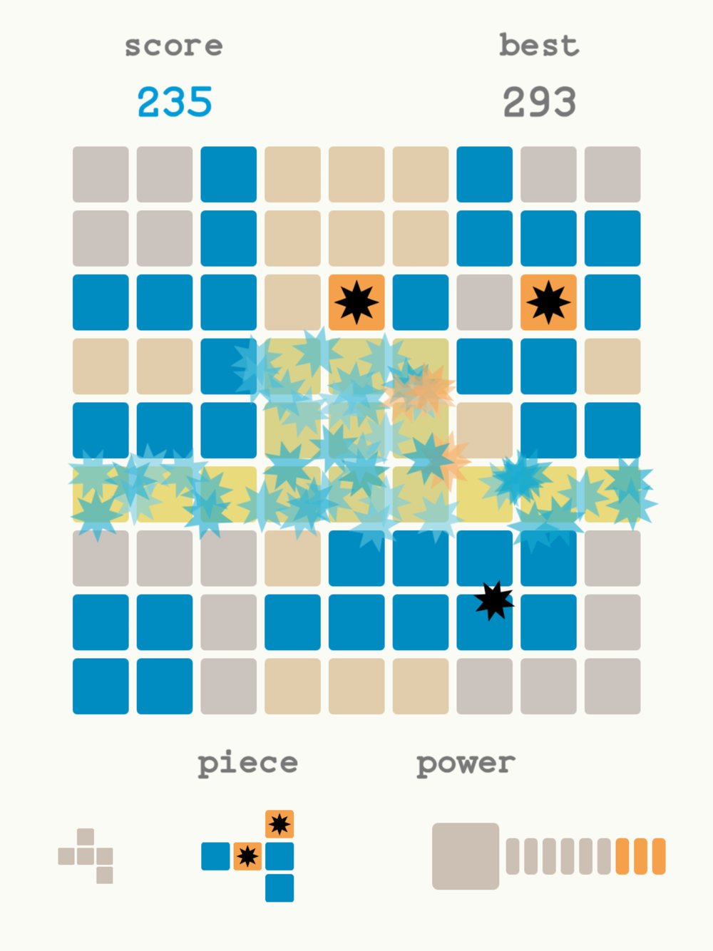 * Each clearance generates a power star, which can be collected (by clearing it off the board) to charge your power meter