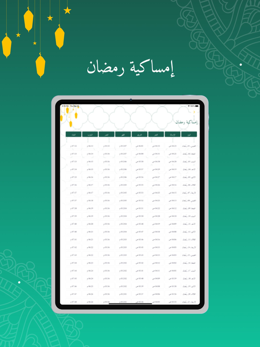 شركة تقنية تقدم لكم امساكية شهر رمضان 2023 بدون نت وسريعة التحميل لجميع الدول الاسلامية ( السعودية - مصر - العراق - الكويت - قطر - الامارات - البحرين - عمان - اليمن - تونس - المغرب - الجزائر - ليبيا - لبنان - سوريا - الاردن - فلسطين )