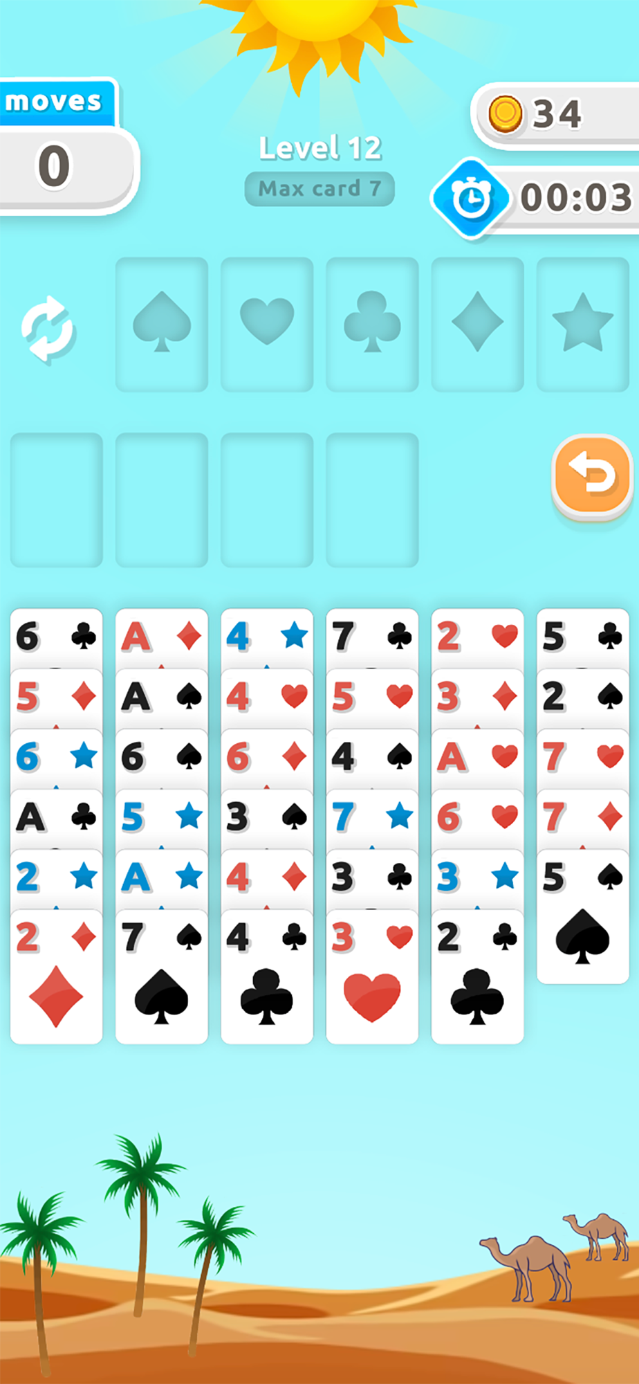 Liberty Solitaire is an easy to control solitaire game for pros and for beginners, with levels designed to make every game different! With a variable number of colors per game, cards per color, and columns, never play the same game: tap on the cards to sort them in numeral descending order, store your cards in the free cells above your deck and get them back whenever you need to complete a sequence. Enjoy the great feeling of a strategic, rewarding and revisited version of a classic solitaire game, not so classic you'll reckon!