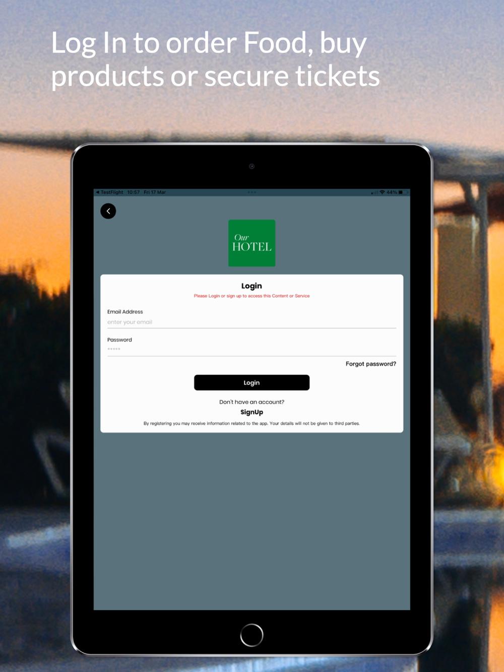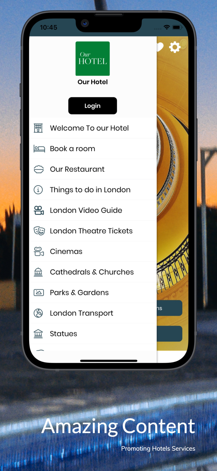 Our Hotel App allows you to promote all your hotel services, from Booking rooms to restaurant and room service orders.