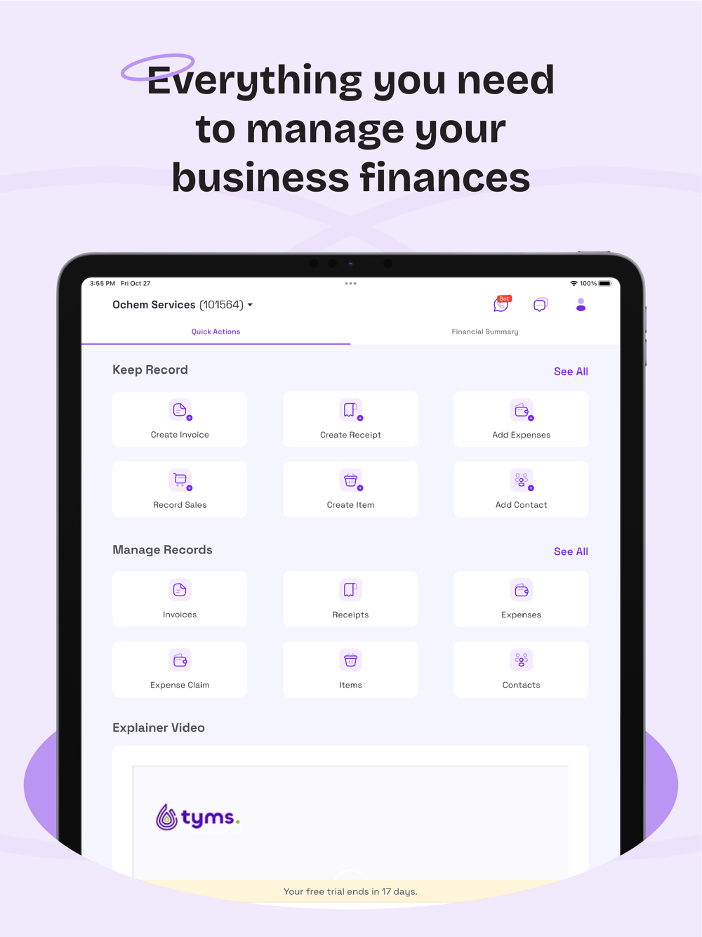 1. Businesses can manage your sales and purchases on Tyms accounting software and bookkeeping app for proper recording.