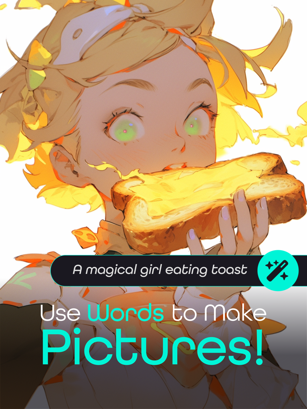 Enter words to get started or upload a picture. Mix words and pictures to finetune details, backgrounds, and character traits. Mix many pictures to create coherent portraits or a mosaic of environments with eclectic flair. Concoct mystique and weave splendor with your customized creation recipes.