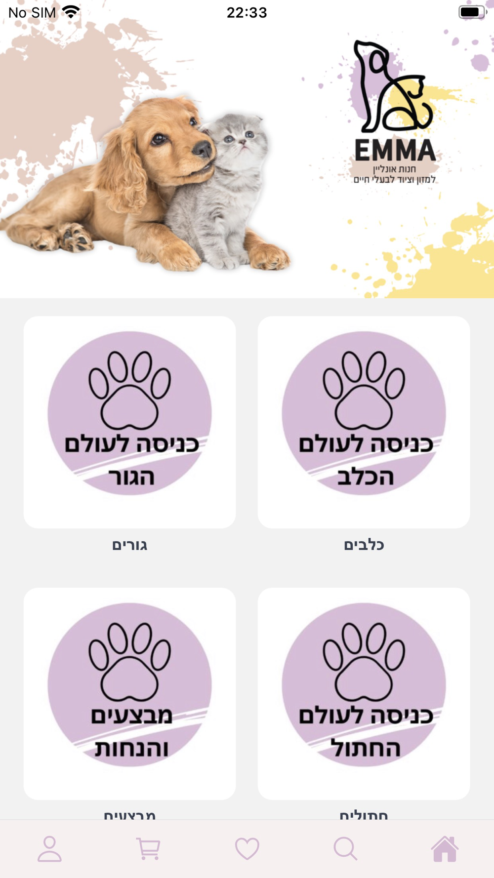 ברוכים הבאים לאפליקציה של אמה - חנות לממכר מזון וציוד לבעלי חיים.
