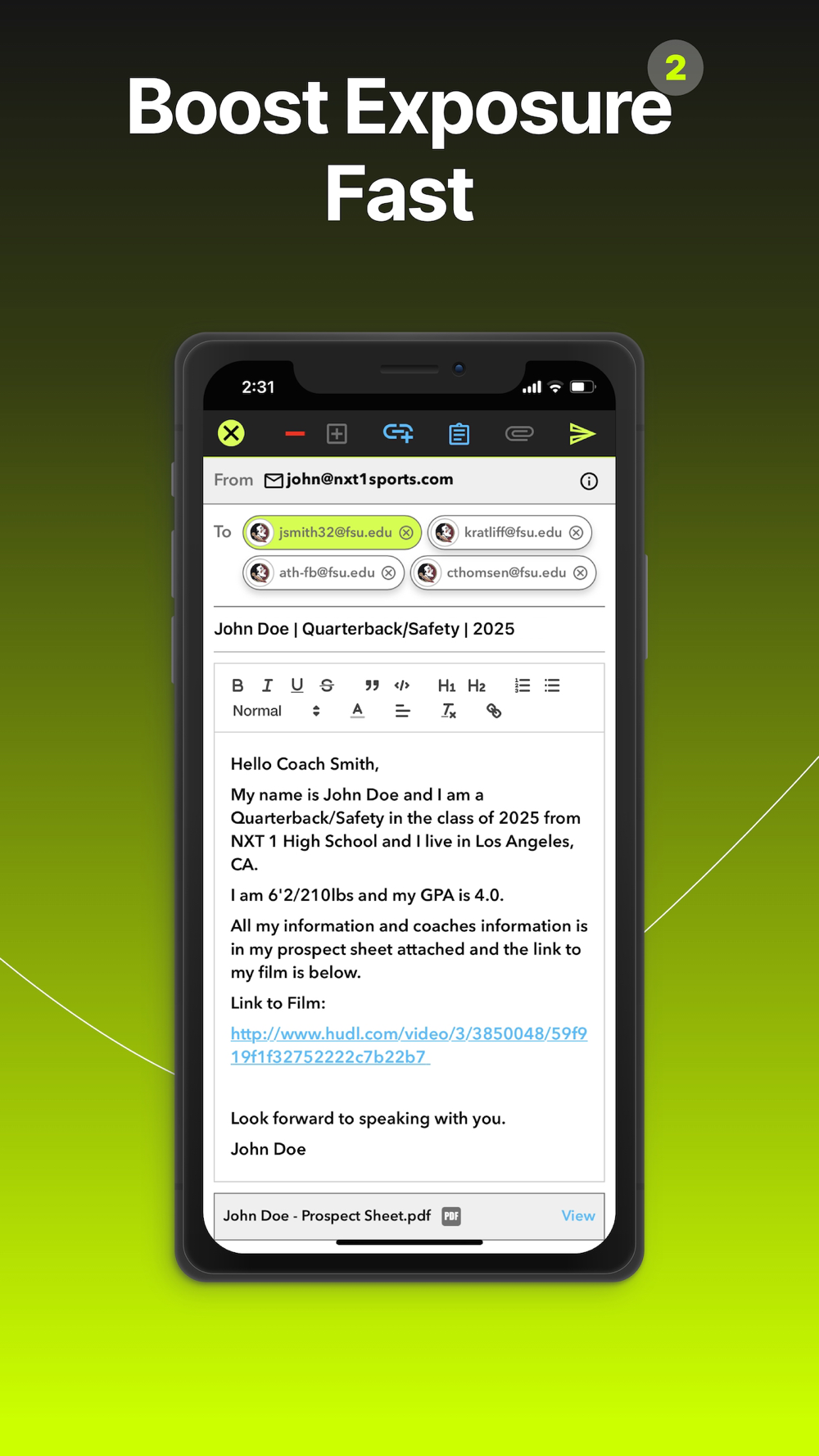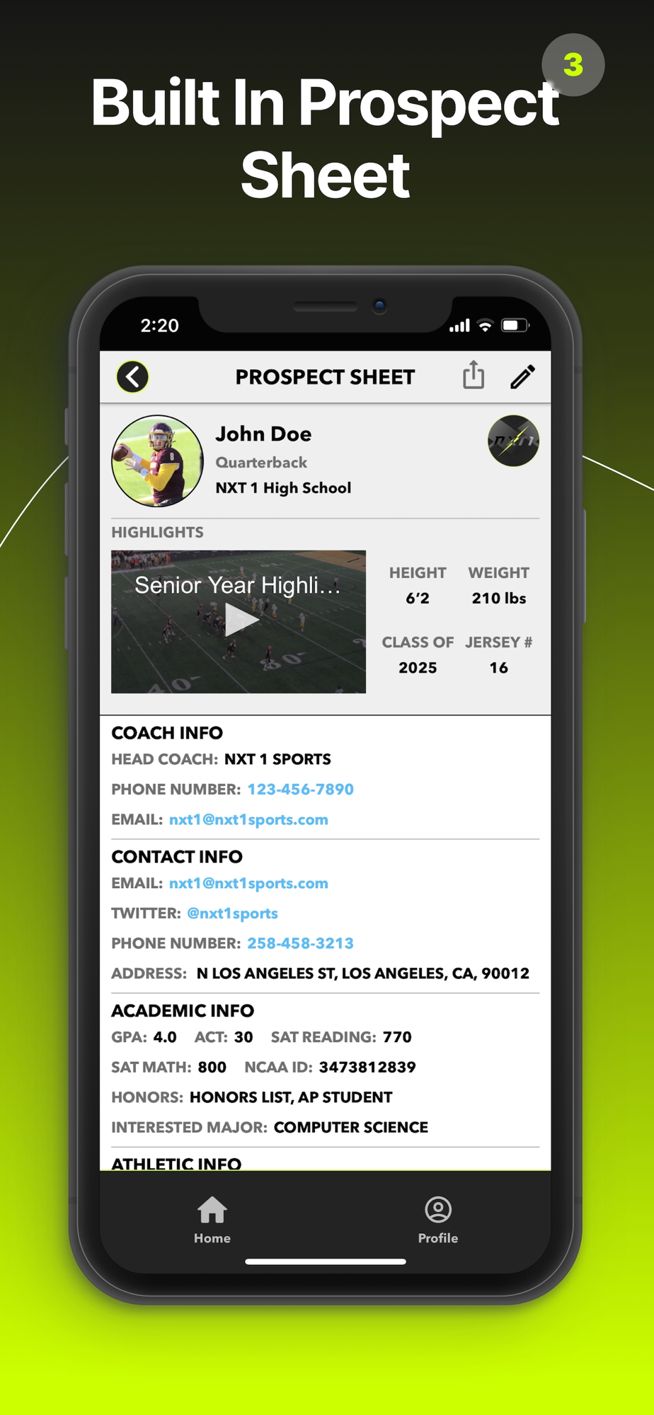 Don't wait to get started on your journey to college athletics. Use the power of a fast, simple, & effective sports recruiting app that is built for rising athletes & get an athletic scholarship! Download NXT 1 today!