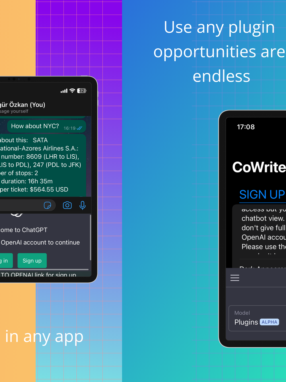 CoWrite allows you to use chatgpt directly from your iOS Keyboard.